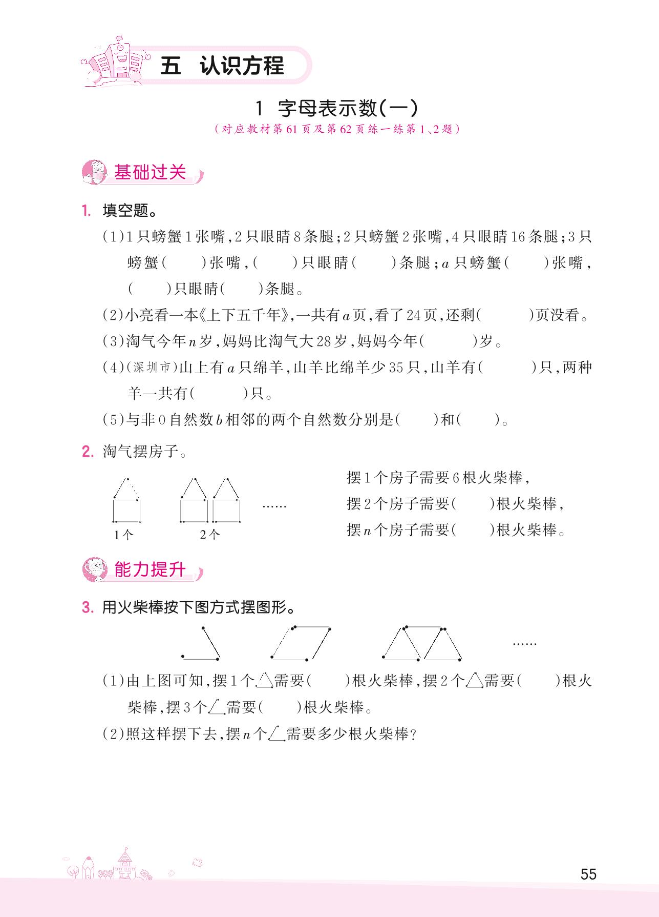 2022下册四年级数学北师版 五 认识方程——1 字母表示数(一)