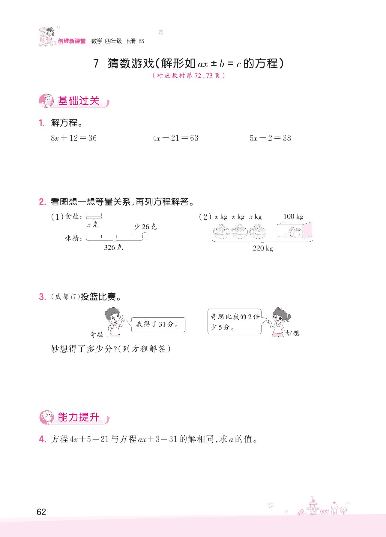 2022下册四年级数学北师版 五 认识方程——7 猜数游戏