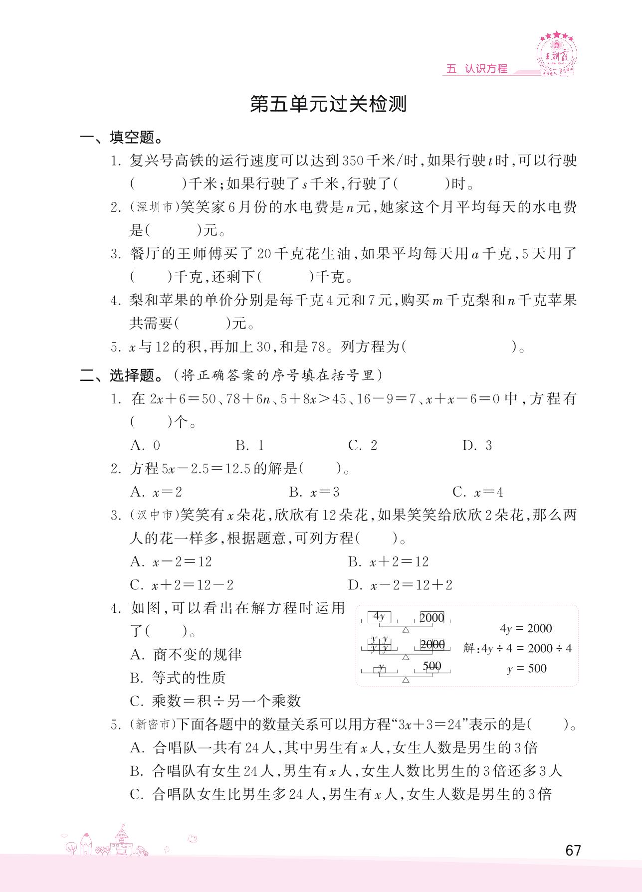 2022下册四年级数学北师版 五 认识方程——第五单元过关检测