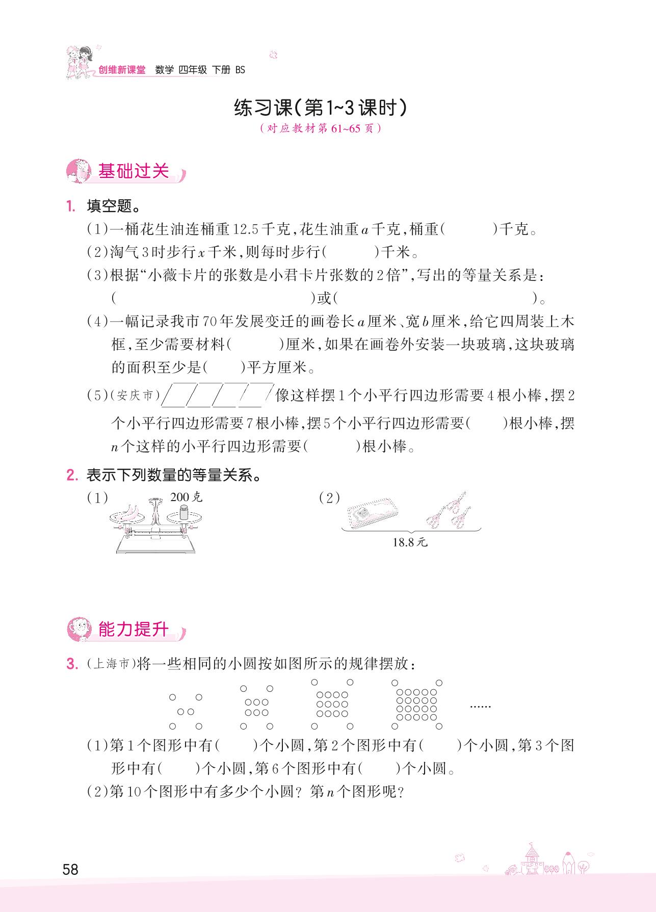 2022下册四年级数学北师版 五 认识方程——练习课(第1~3课时)