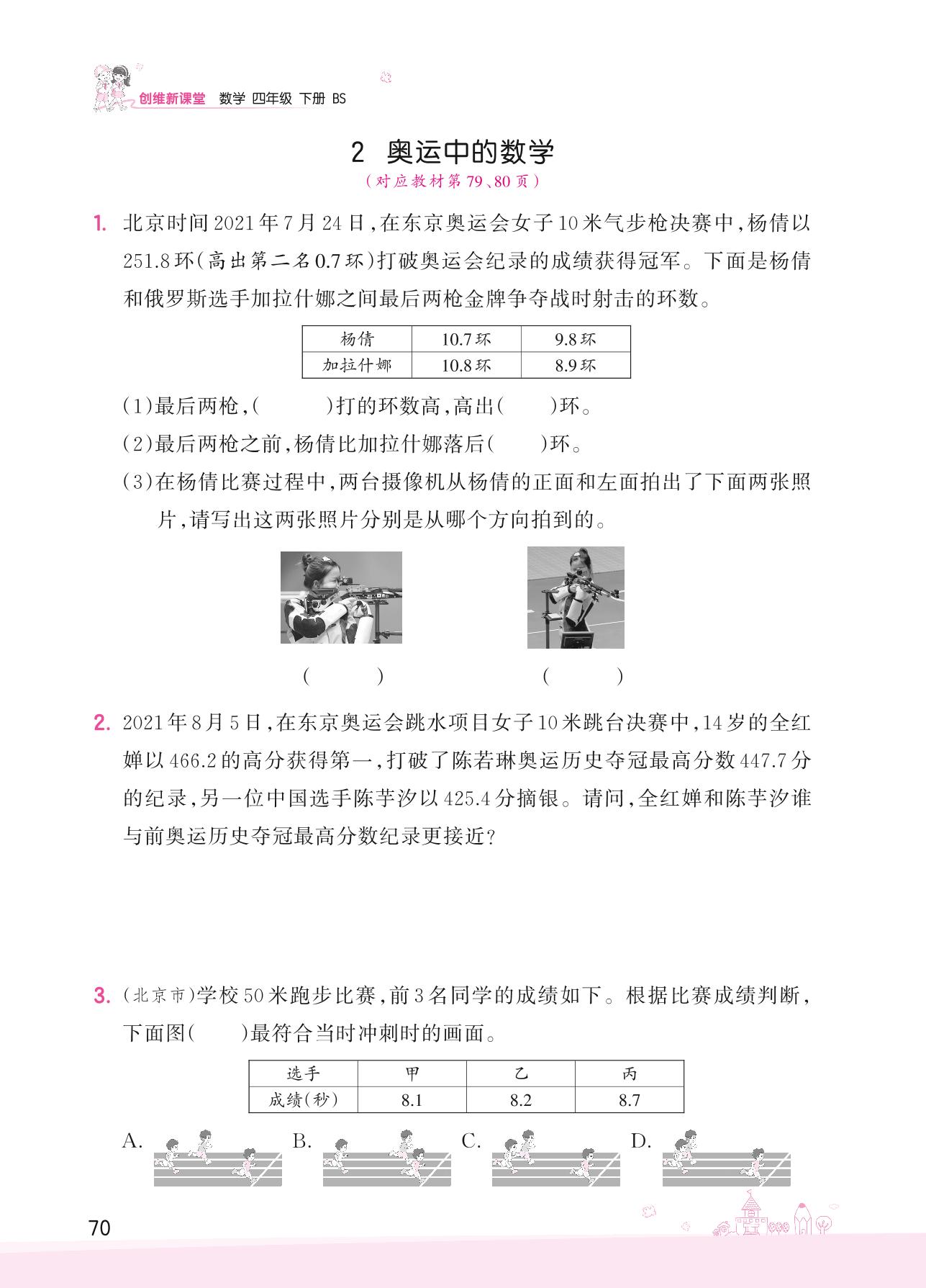 2022下册四年级数学北师版 数学好玩——2 奥运中的数学