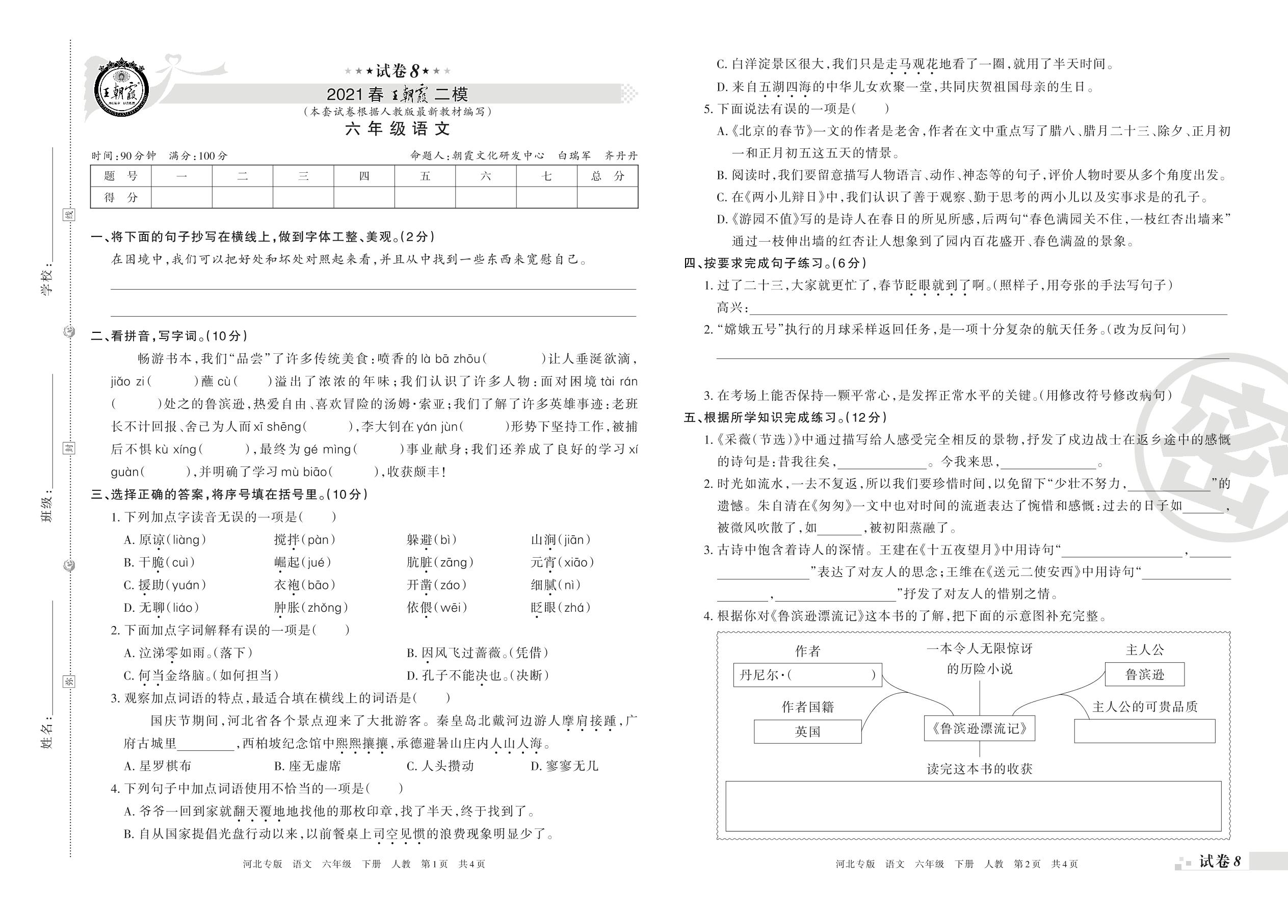 王朝霞期末模拟卷六年级下册语文(人教版)_R2108022820【8】