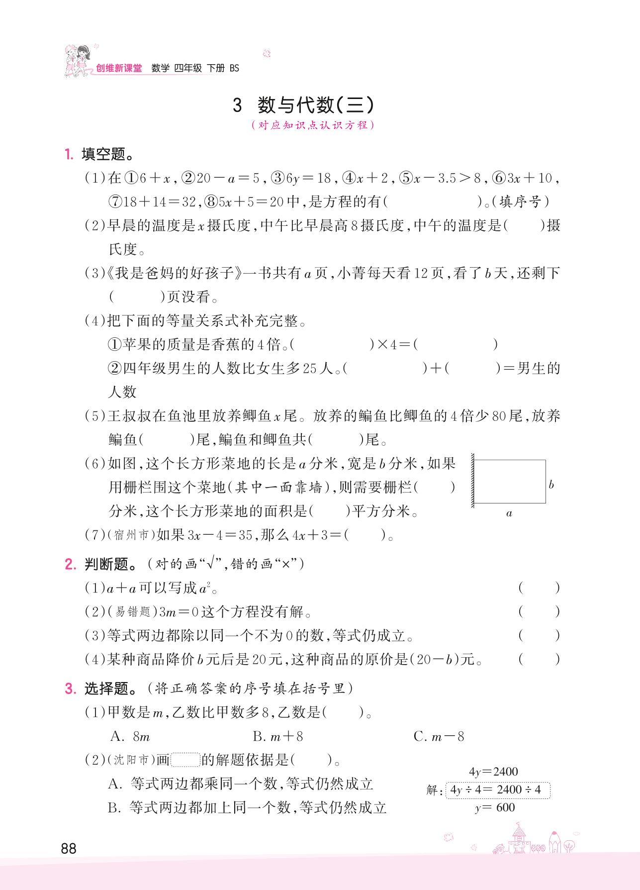 2022下册四年级数学北师版 总复习——3 数与代数(三)