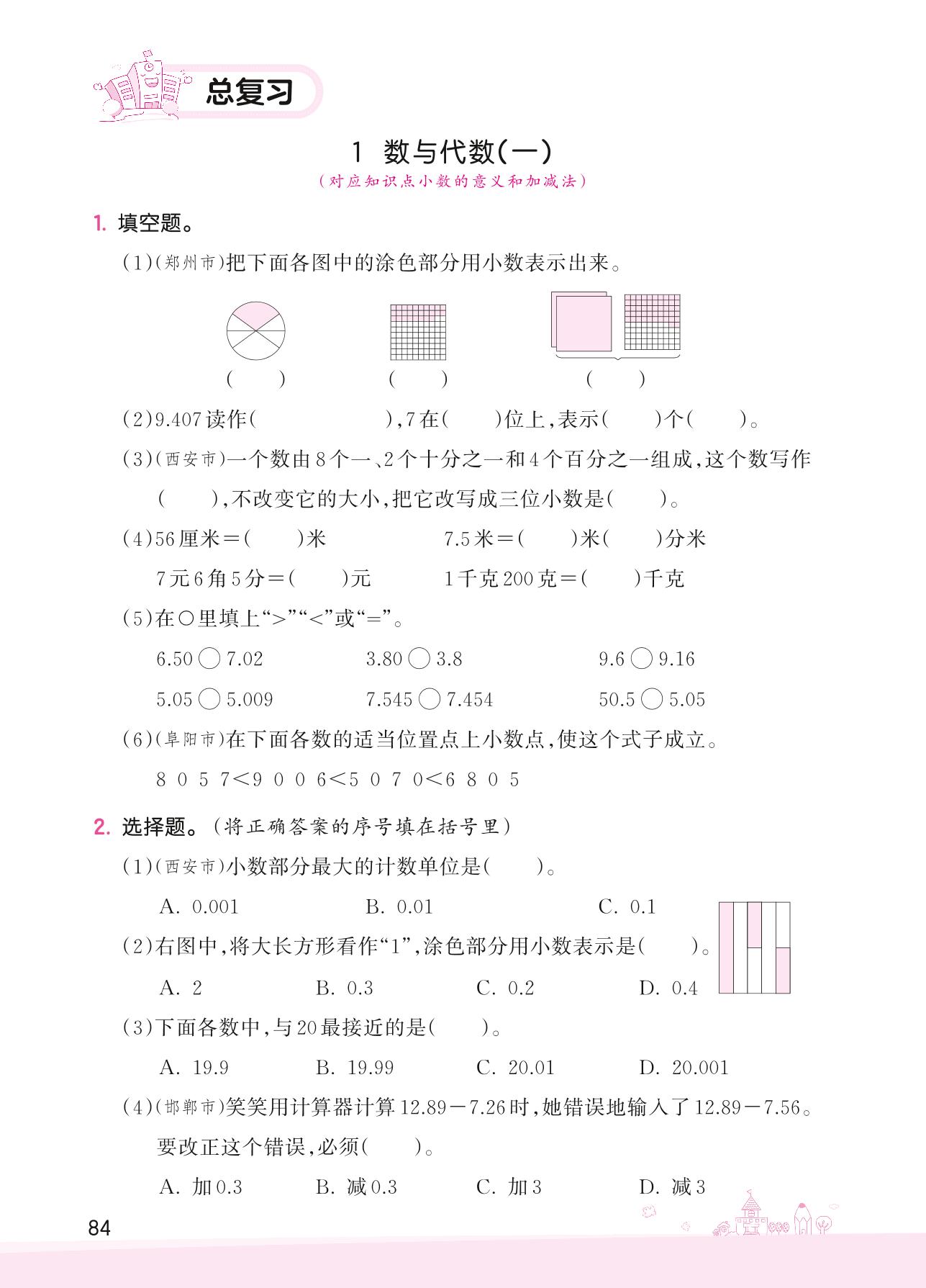 2022下册四年级数学北师版 总复习——1 数与代数(一)