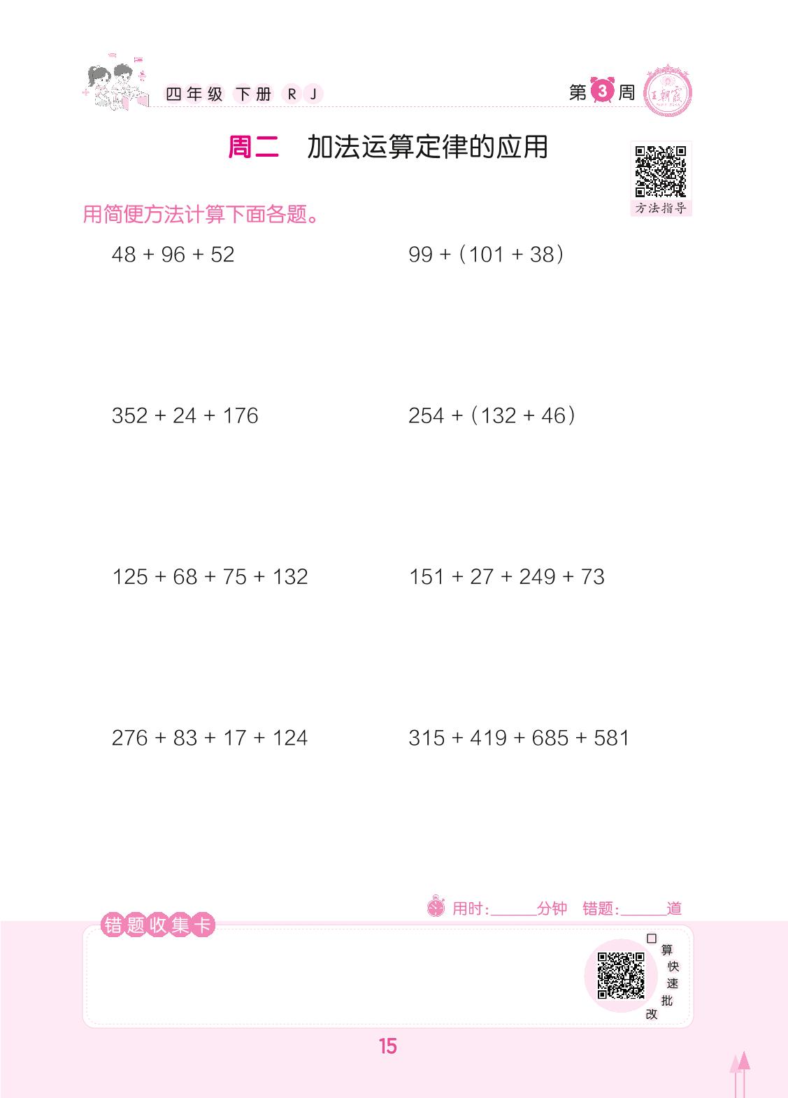 2022下册四年级数学人教版 第3周 周二