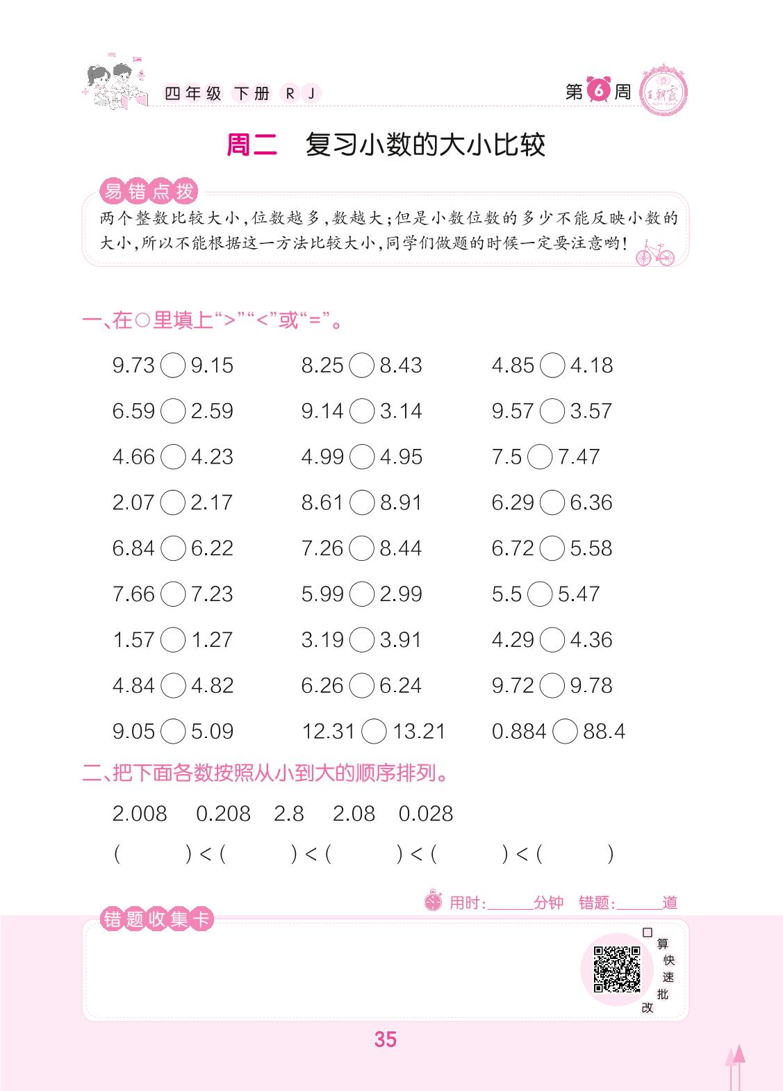 2022下册四年级数学人教版 第6周 周二