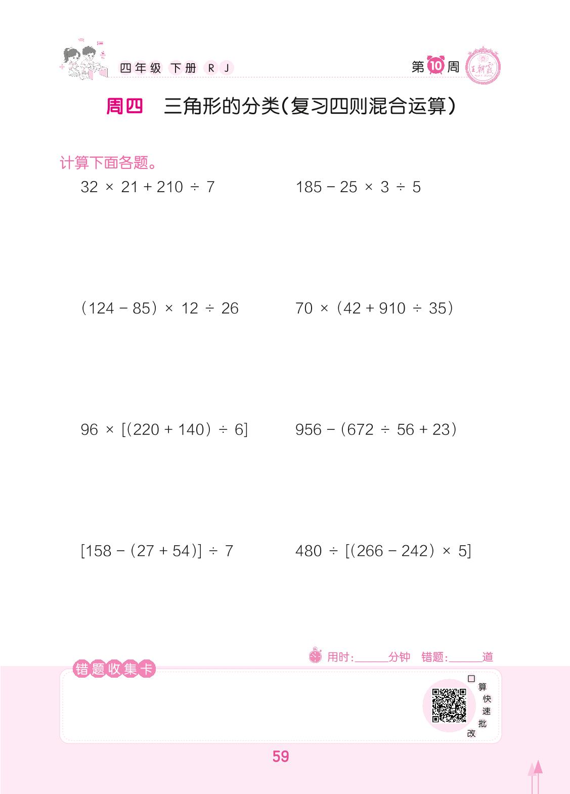 2022下册四年级数学人教版 第10周 周四