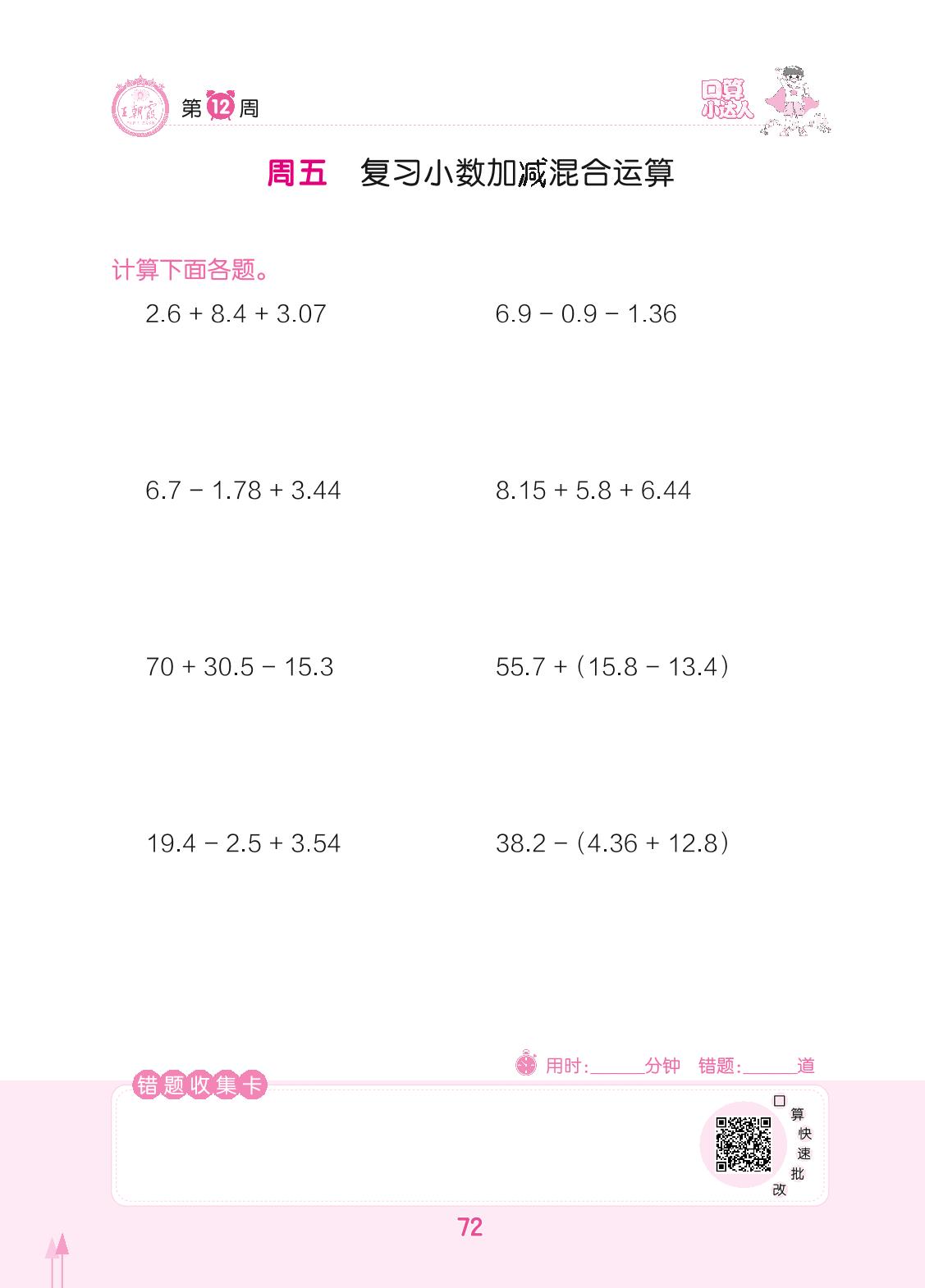 2022下册四年级数学人教版 第12周 周五