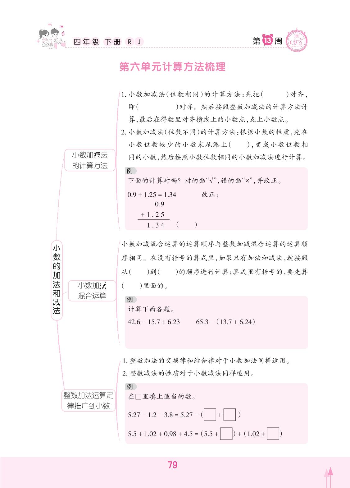 2022下册四年级数学人教版 第13周 第六单元计算方法梳理