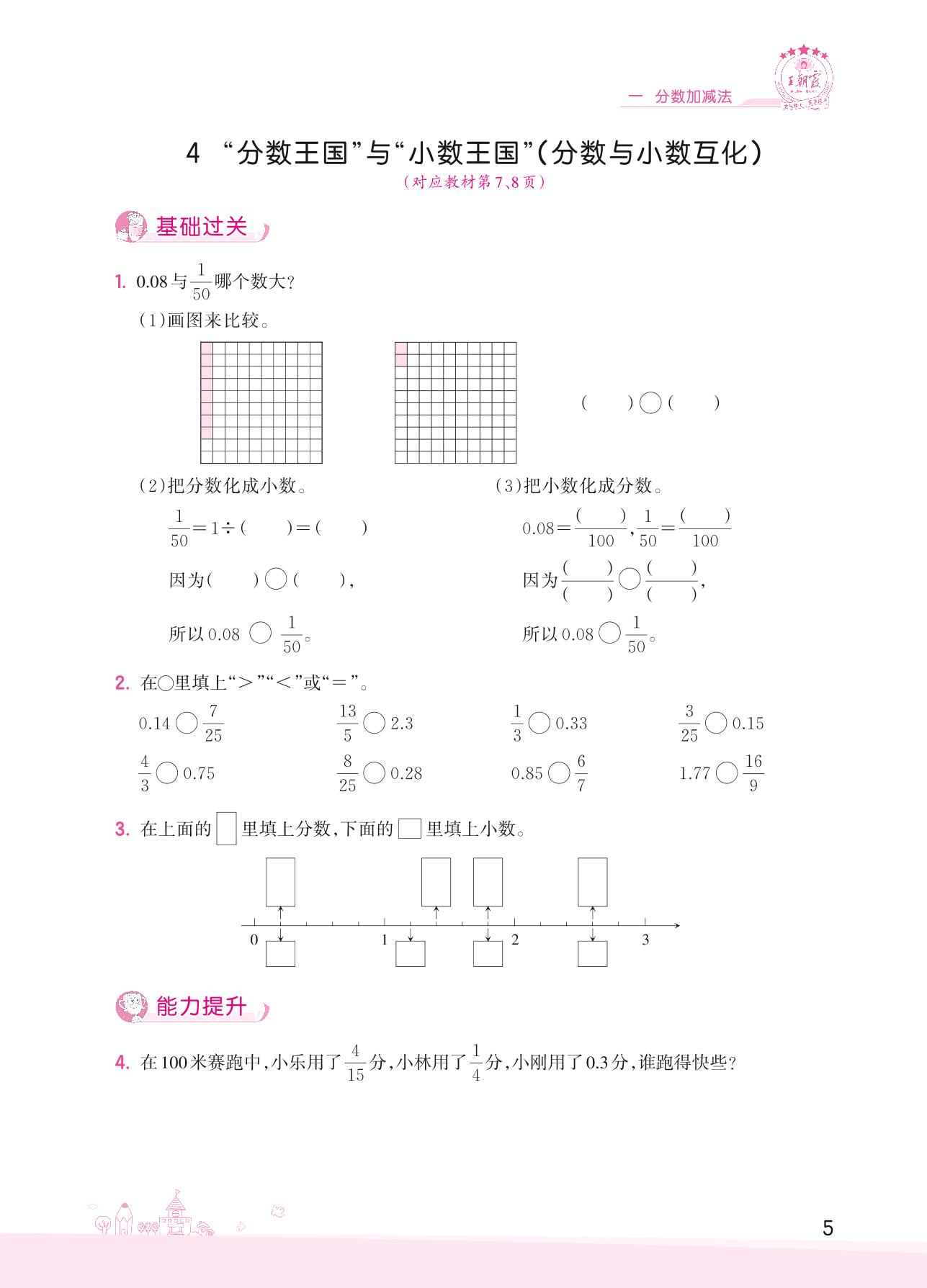 2022下册五年级数学北师版 一 分数加减法——4 “分数王国”与“小数王国”