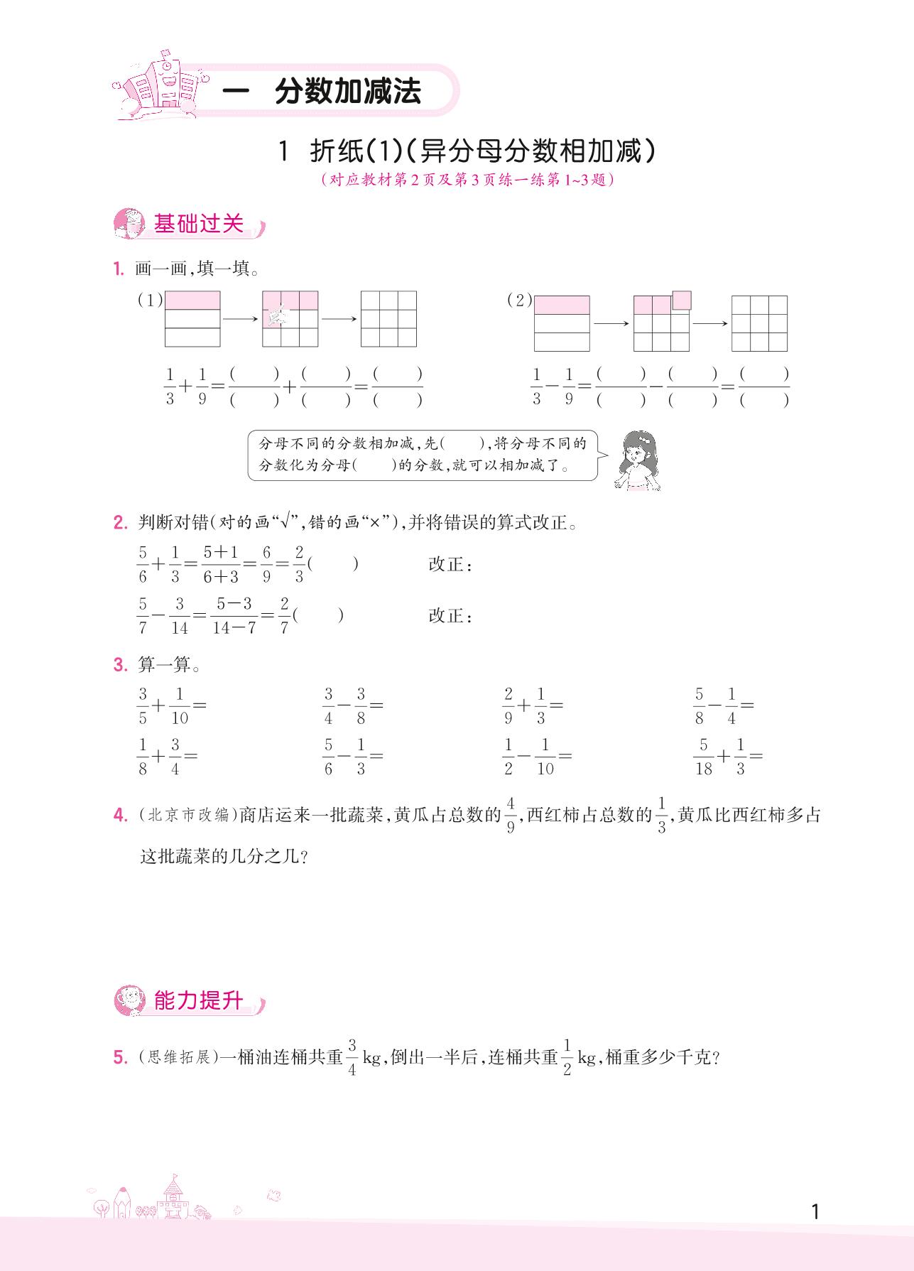2022下册五年级数学北师版 一 分数加减法——1 折纸(1)