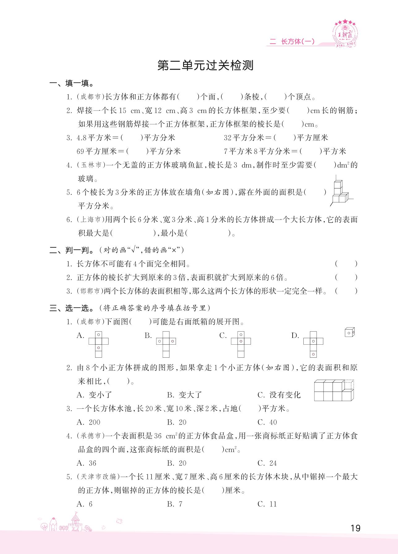 2022下册五年级数学北师版 二 长方体(一)——第二单元过关检测