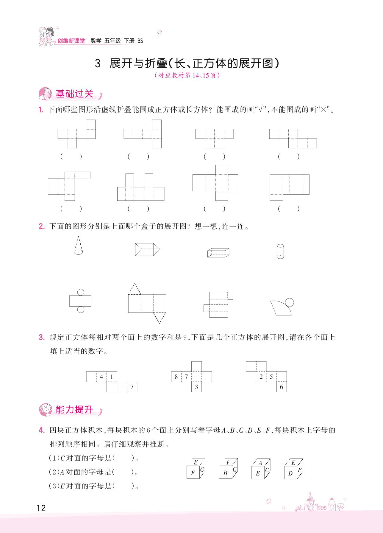 2022下册五年级数学北师版 二 长方体(一)——3 展开与折叠