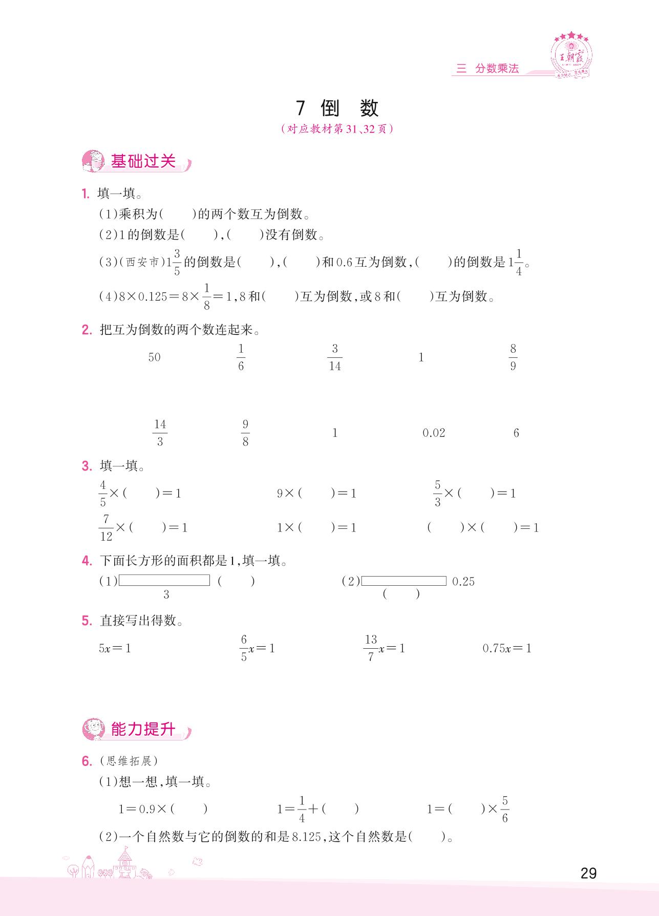 2022下册五年级数学北师版 三 分数乘法——7 倒数