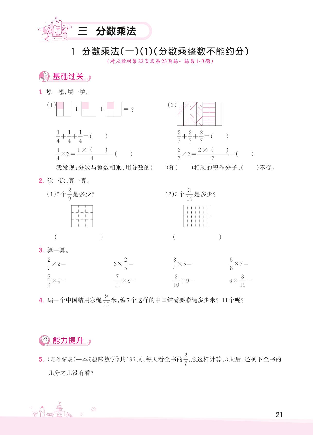 2022下册五年级数学北师版 三 分数乘法——1 分数乘法(一)(1)