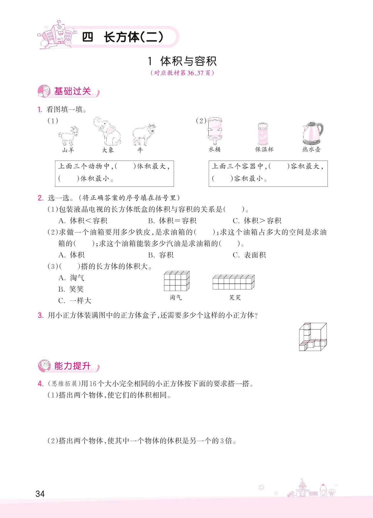2022下册五年级数学北师版 四 长方体(二)——1 体积与容积
