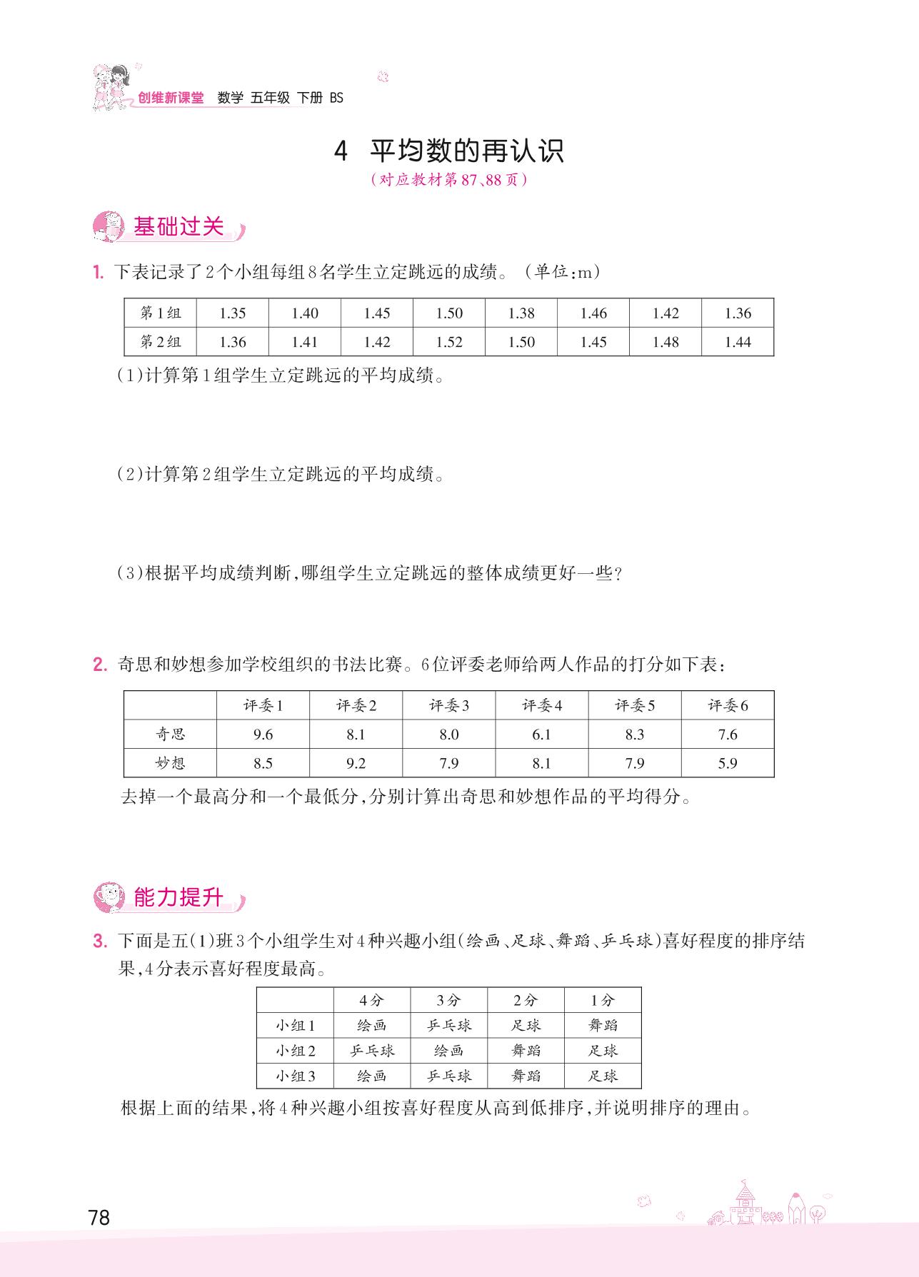 2022下册五年级数学北师版 八 数据的表示和分析——4 平均数的再认识