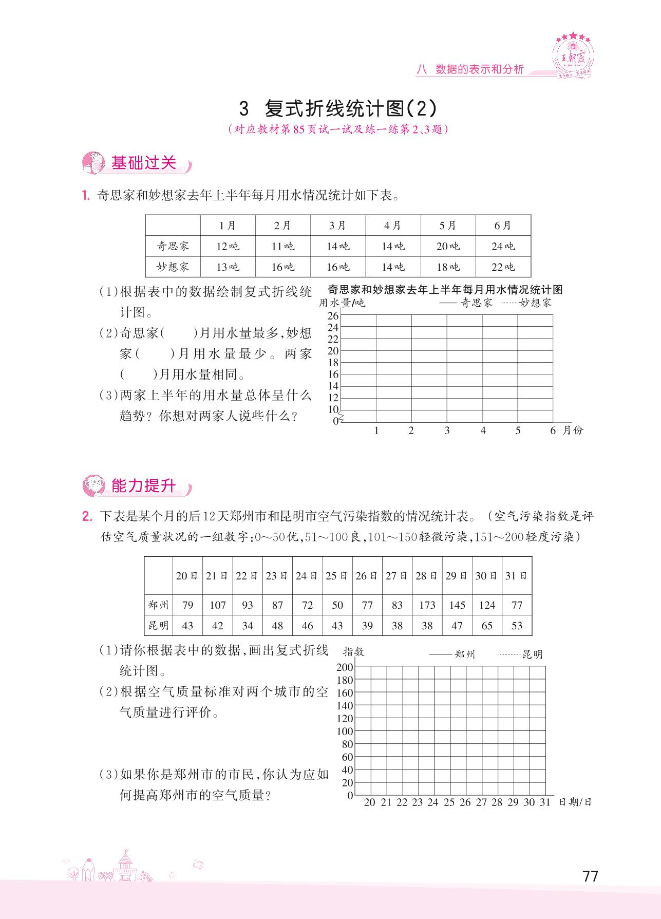 2022下册五年级数学北师版 八 数据的表示和分析——3 复式折线统计图(2)