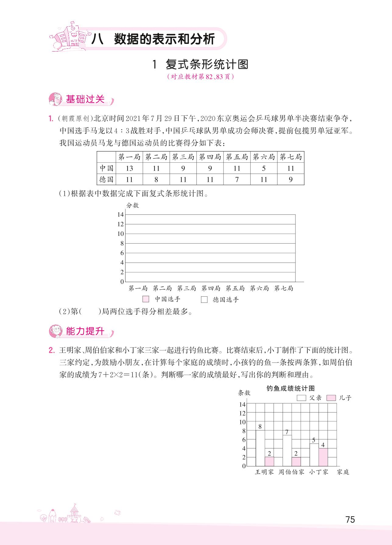 2022下册五年级数学北师版 八 数据的表示和分析——1 复式条形统计图
