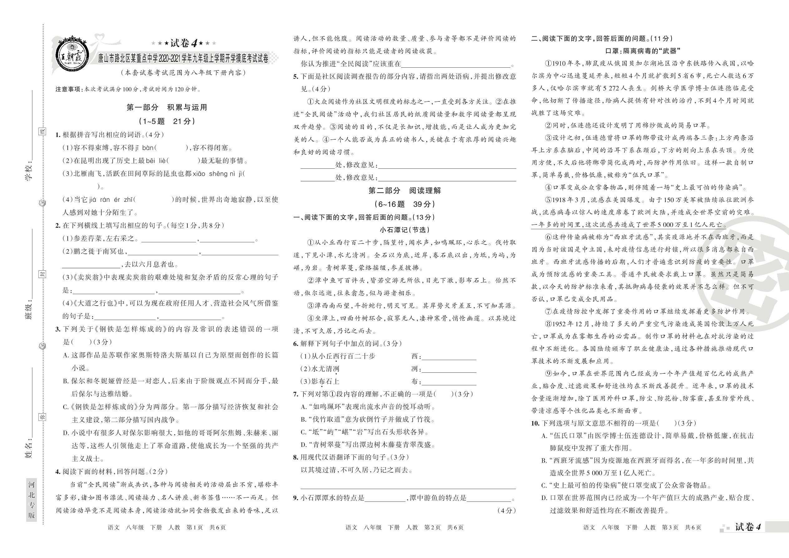 2019-2020学年第二学期唐山市路北区八年级语文试卷(人教版)【4】