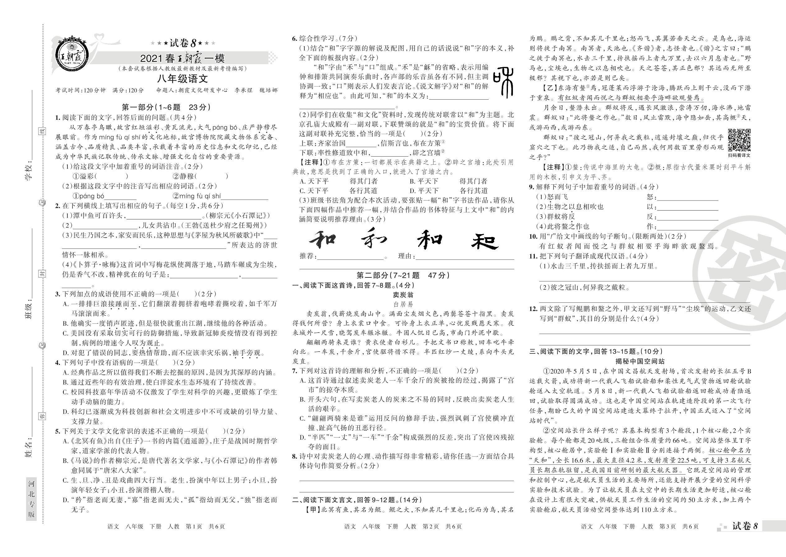 王朝霞期末模拟卷八年级下册语文(人教版)_R2108023220【8】