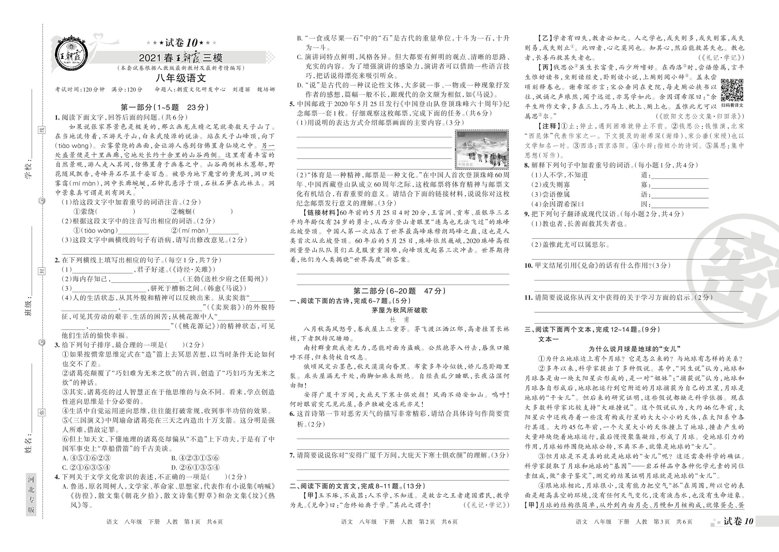 王朝霞期末模拟卷八年级下册语文(人教版)_R2108023238【10】