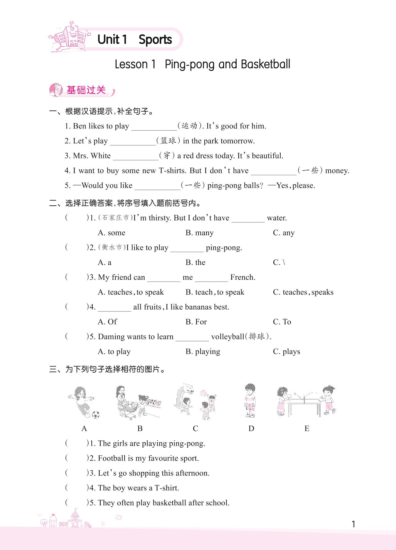 2022下册六年级英语冀教版 Unit 1—Lesson 1 Ping-pong and Basketball