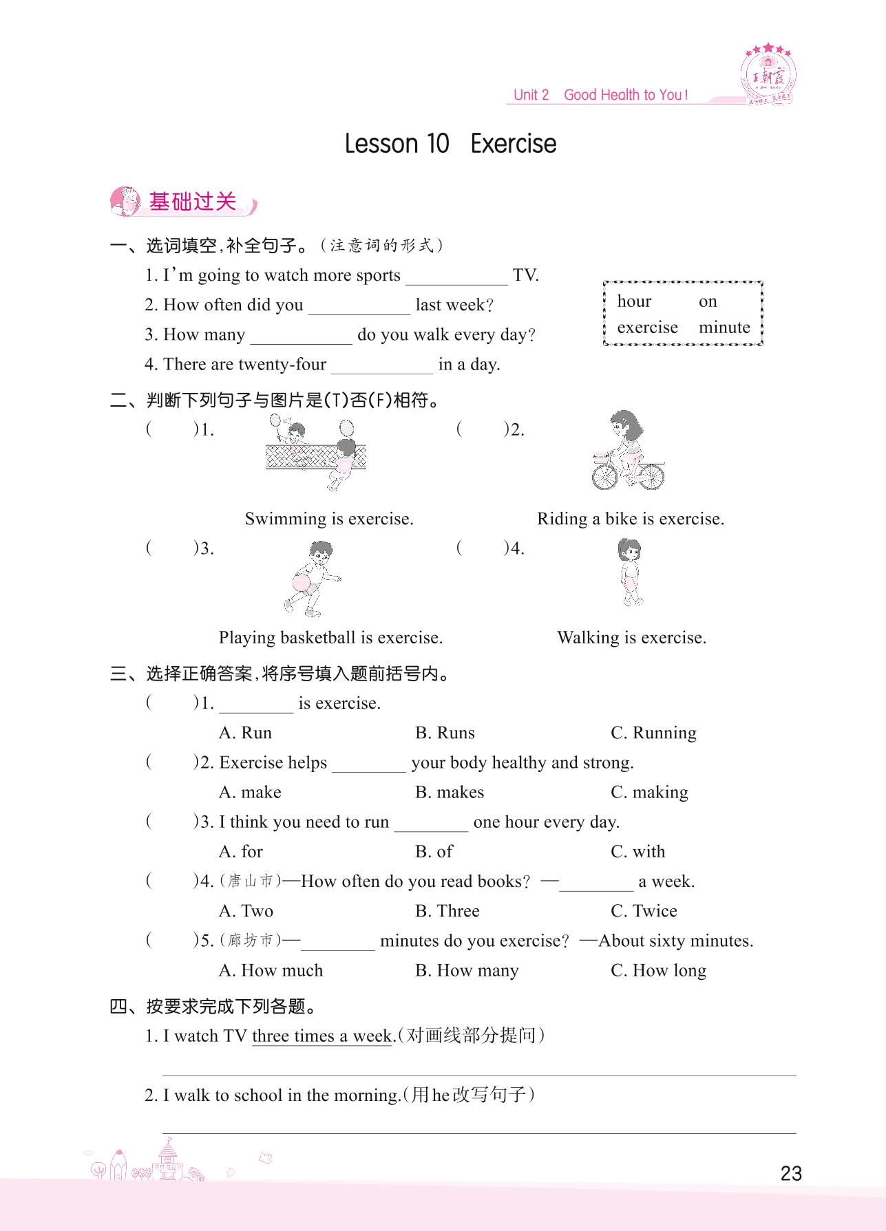 2022下册六年级英语冀教版 Unit 2—Lesson 10 Exercise