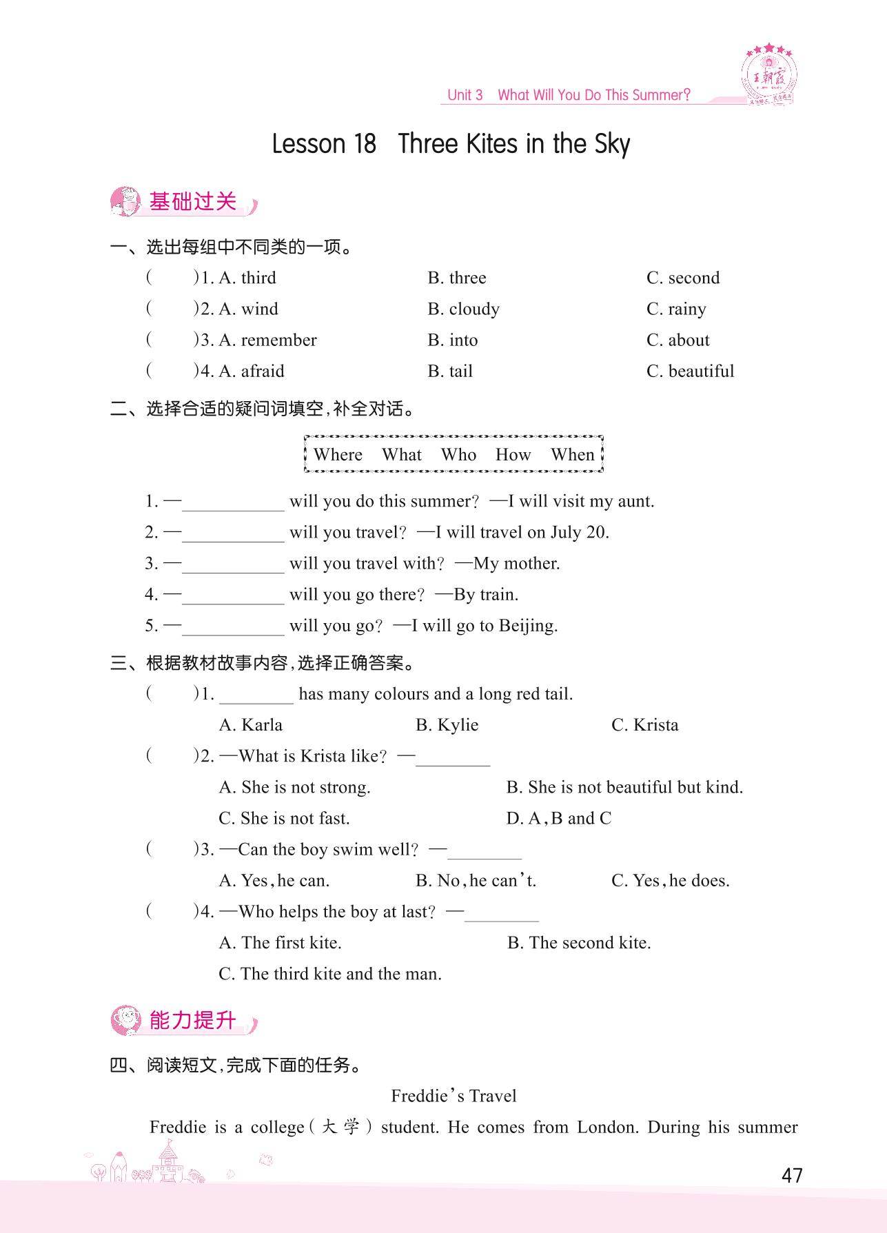 2022下册六年级英语冀教版 Unit 3—Lesson 18 Three Kites in the Sky