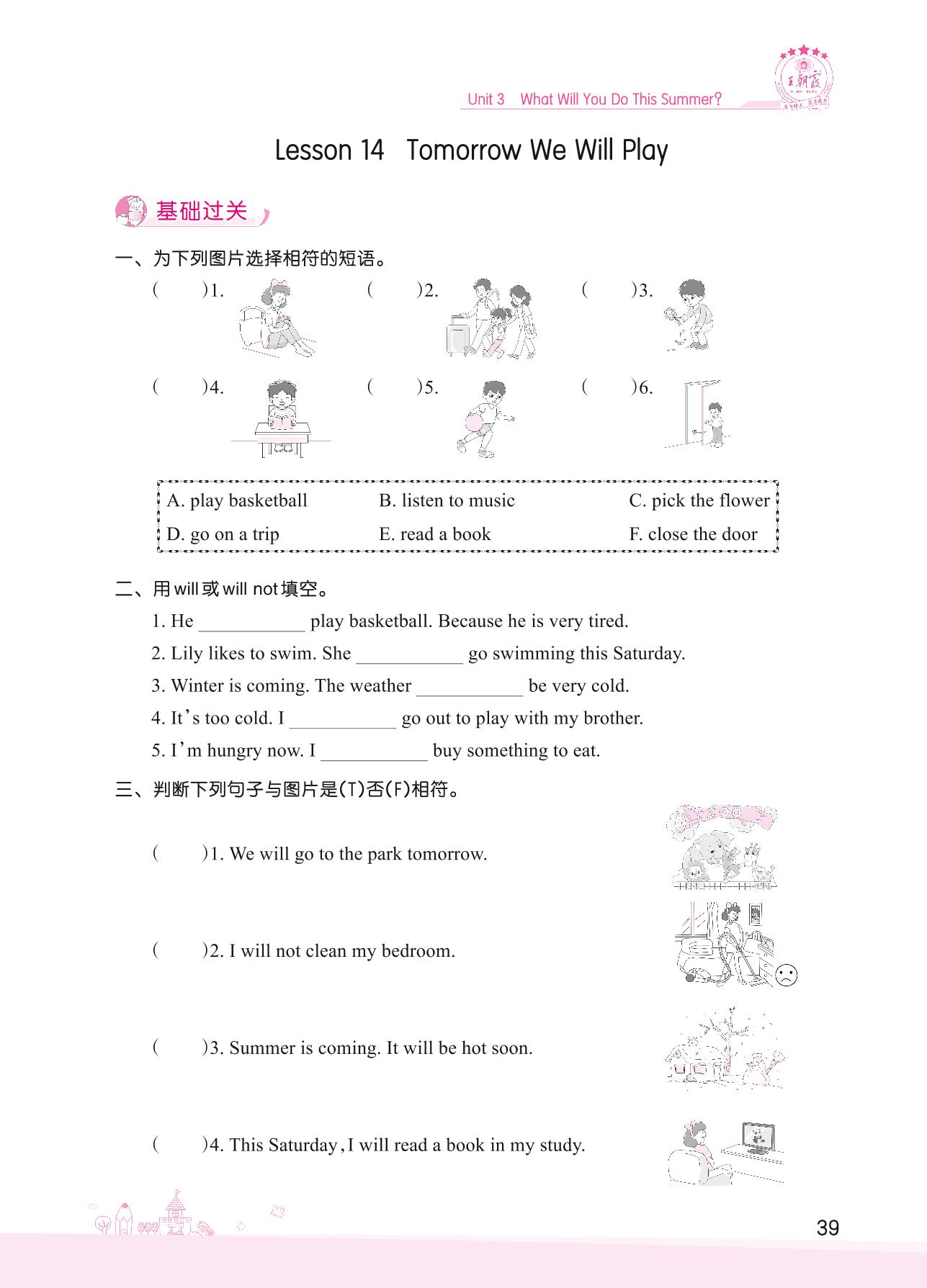 2022下册六年级英语冀教版 Unit 3—Lesson 14 Tomorrow We Will Play