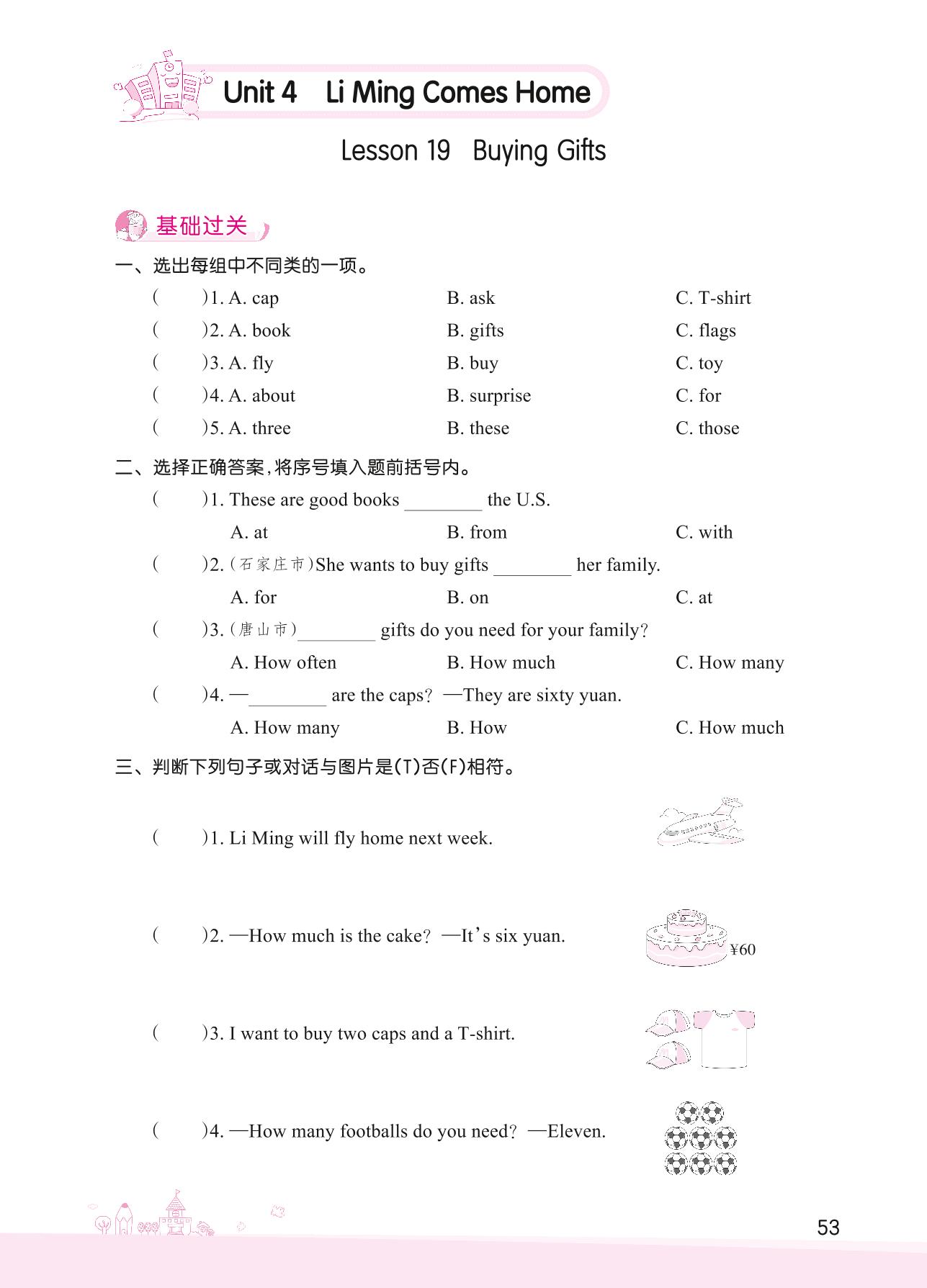 2022下册六年级英语冀教版 Unit 4—Lesson 19 Buying Gifts
