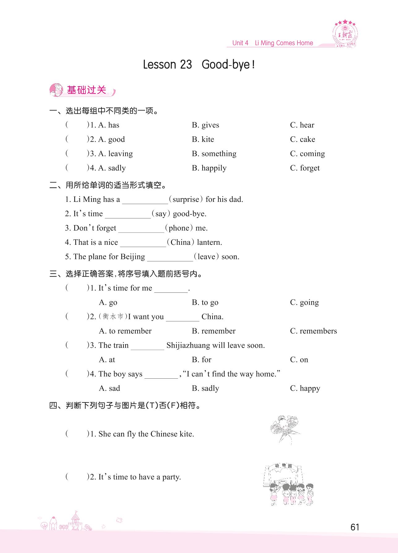 2022下册六年级英语冀教版 Unit 4—Lesson 23 Good-bye!