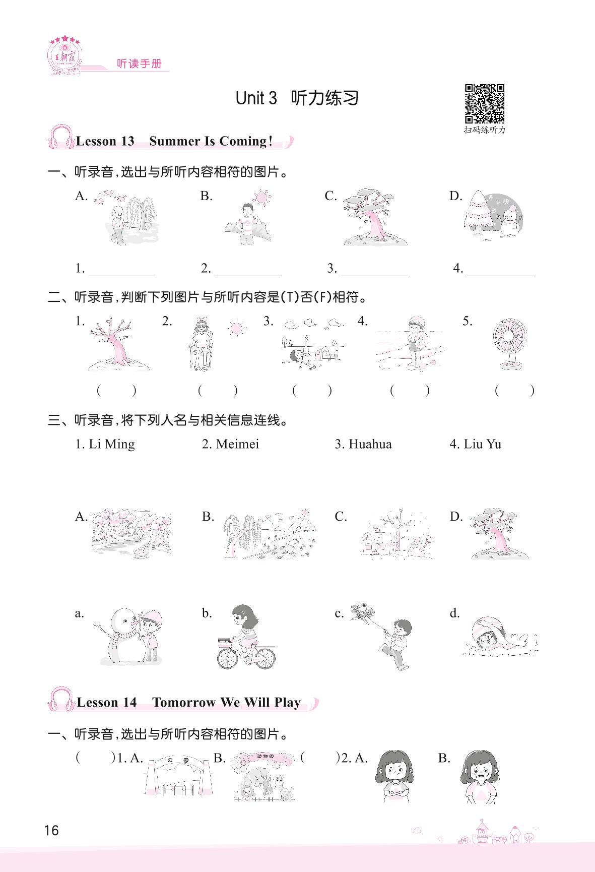 2022下册六年级英语冀教版 Unit 3 What Will You Do This Summer?—Lesson 13-17听力练习