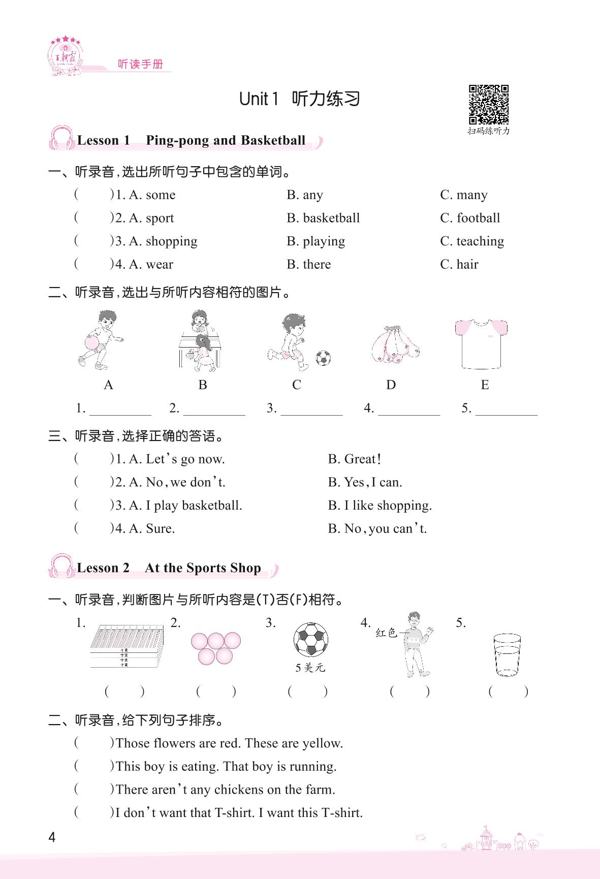 2022下册六年级英语冀教版 Unit 1 Sports—Lesson 1-5听力练习