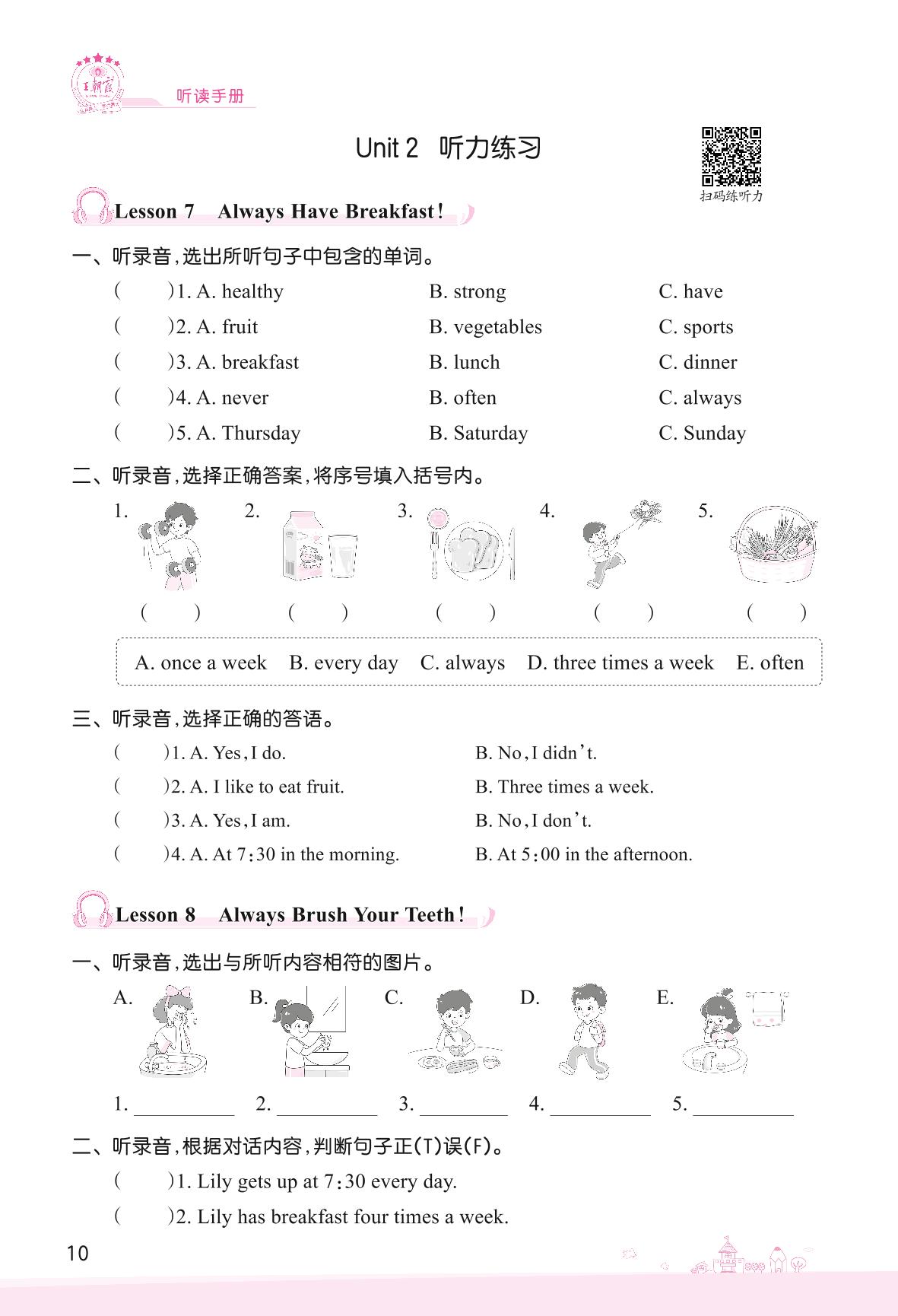 2022下册六年级英语冀教版 Unit 2 Good Health to You!—Lesson 7-11听力练习