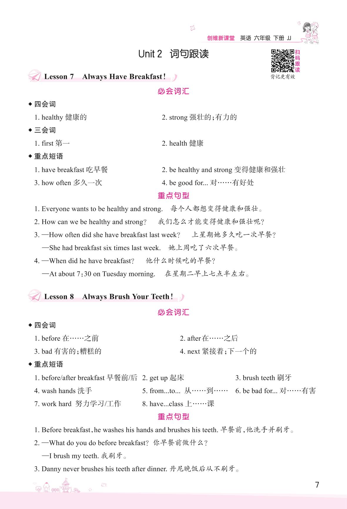 2022下册六年级英语冀教版 Unit 2 Good Health to You!—词句跟读