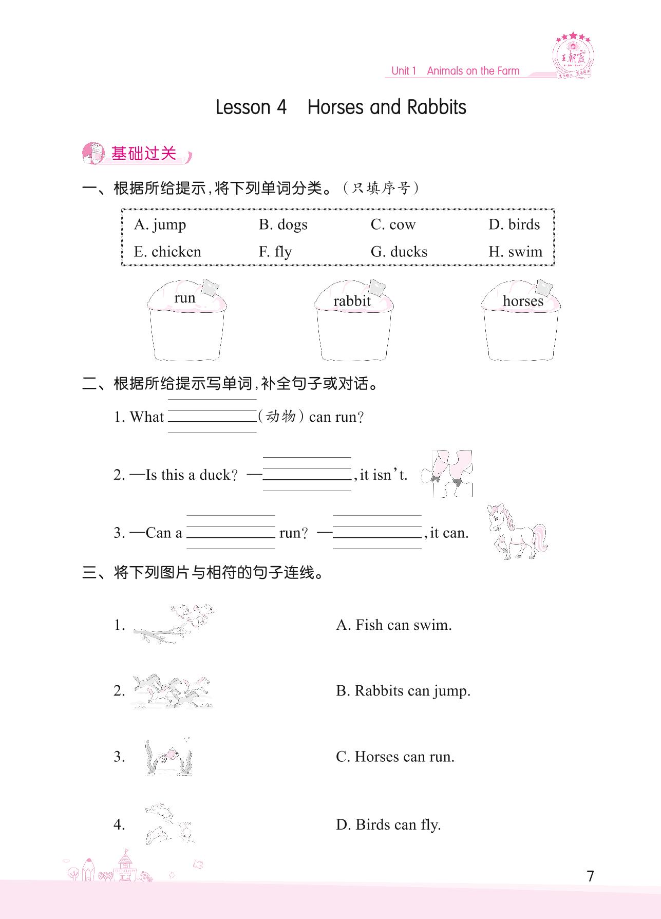 2022下册三年级英语冀教版 Unit 1—Lesson 4 Horses and Rabbits