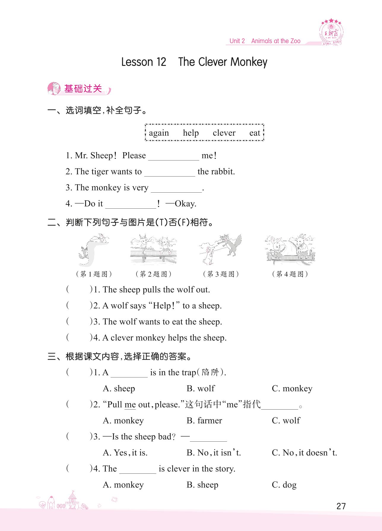 2022下册三年级英语冀教版 Unit 2—Lesson 12 The Clever Monkey