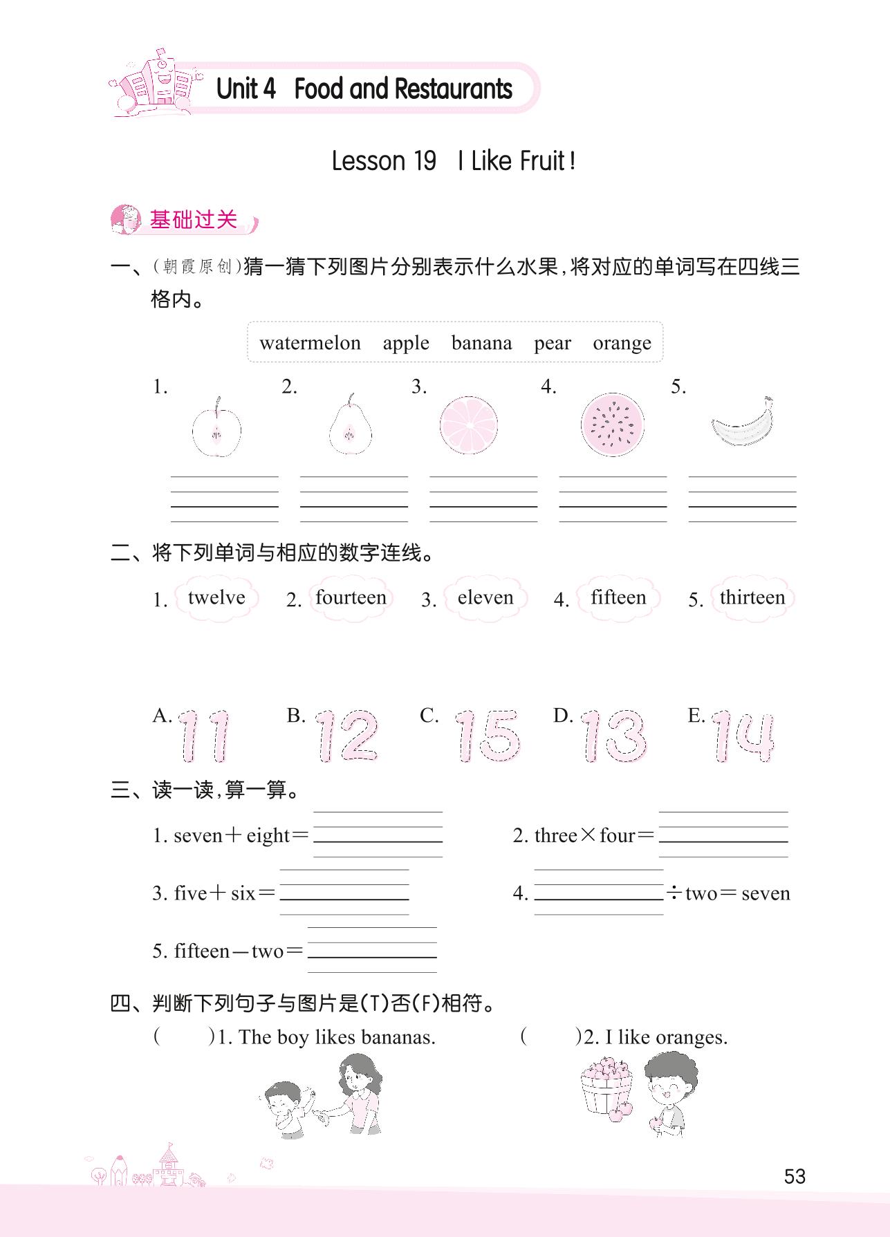 2022下册三年级英语冀教版 Unit 4—Lesson 19 I Like Fruit!
