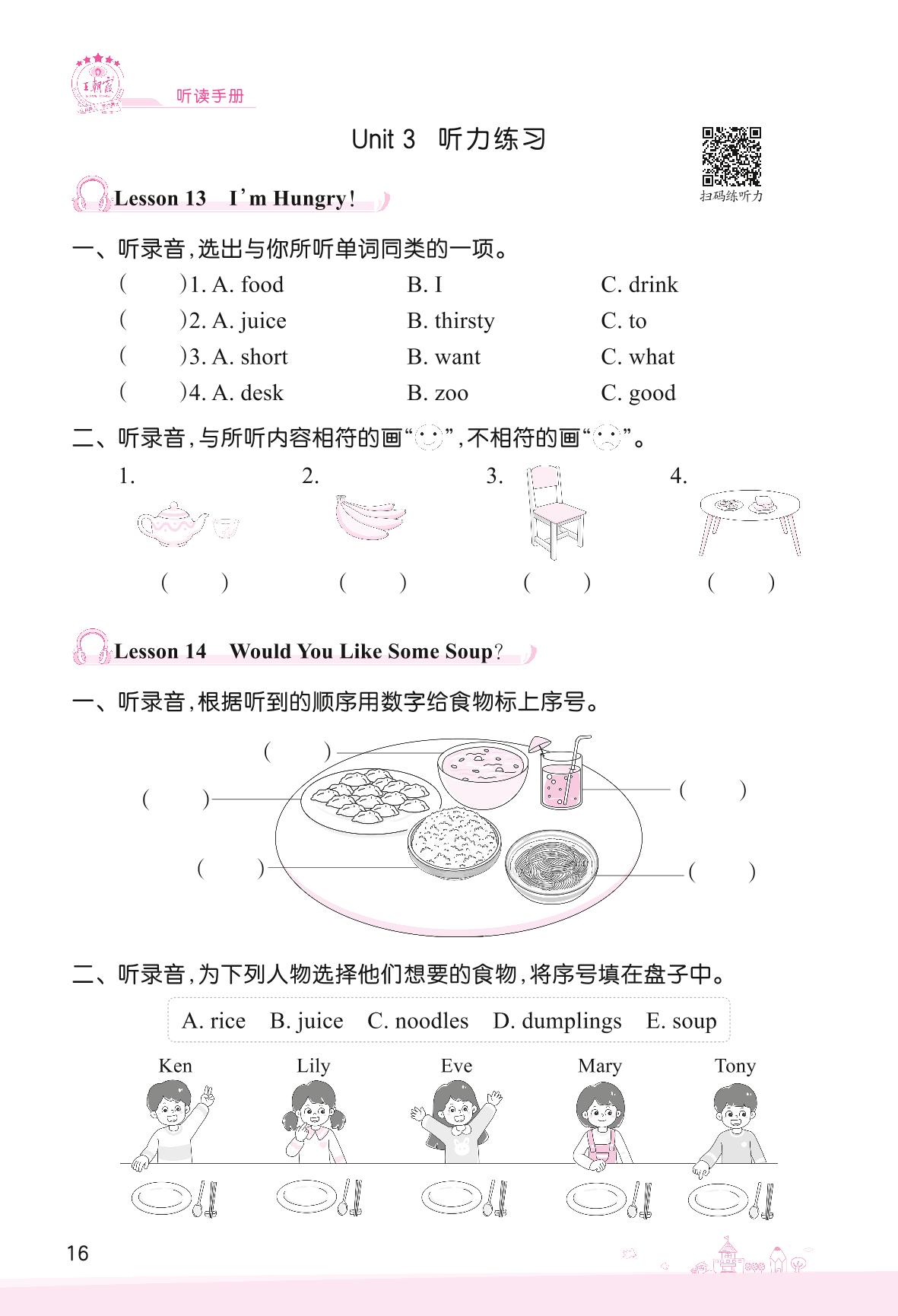 2022下册三年级英语冀教版 Unit 3 Food and Meals—Lesson 13-17听力练习