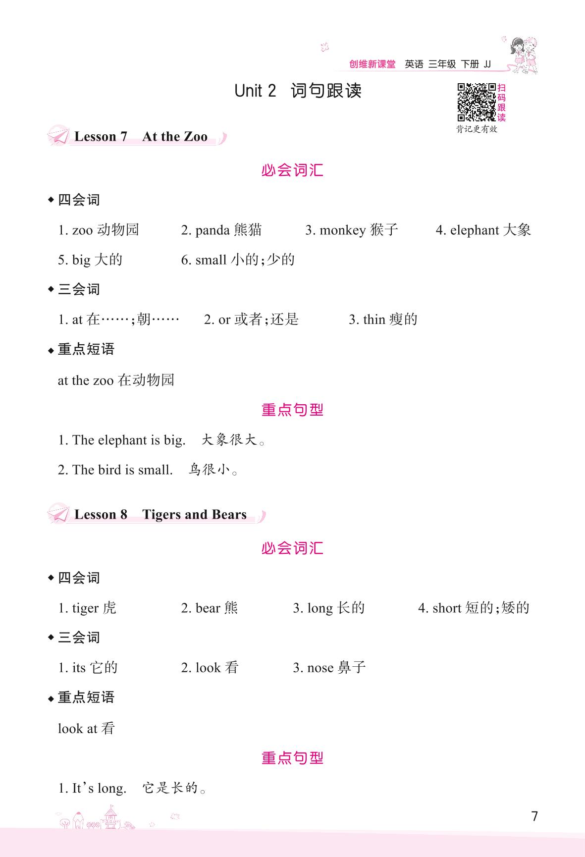 2022下册三年级英语冀教版 Unit 2 Animals at the Zoo—词句跟读