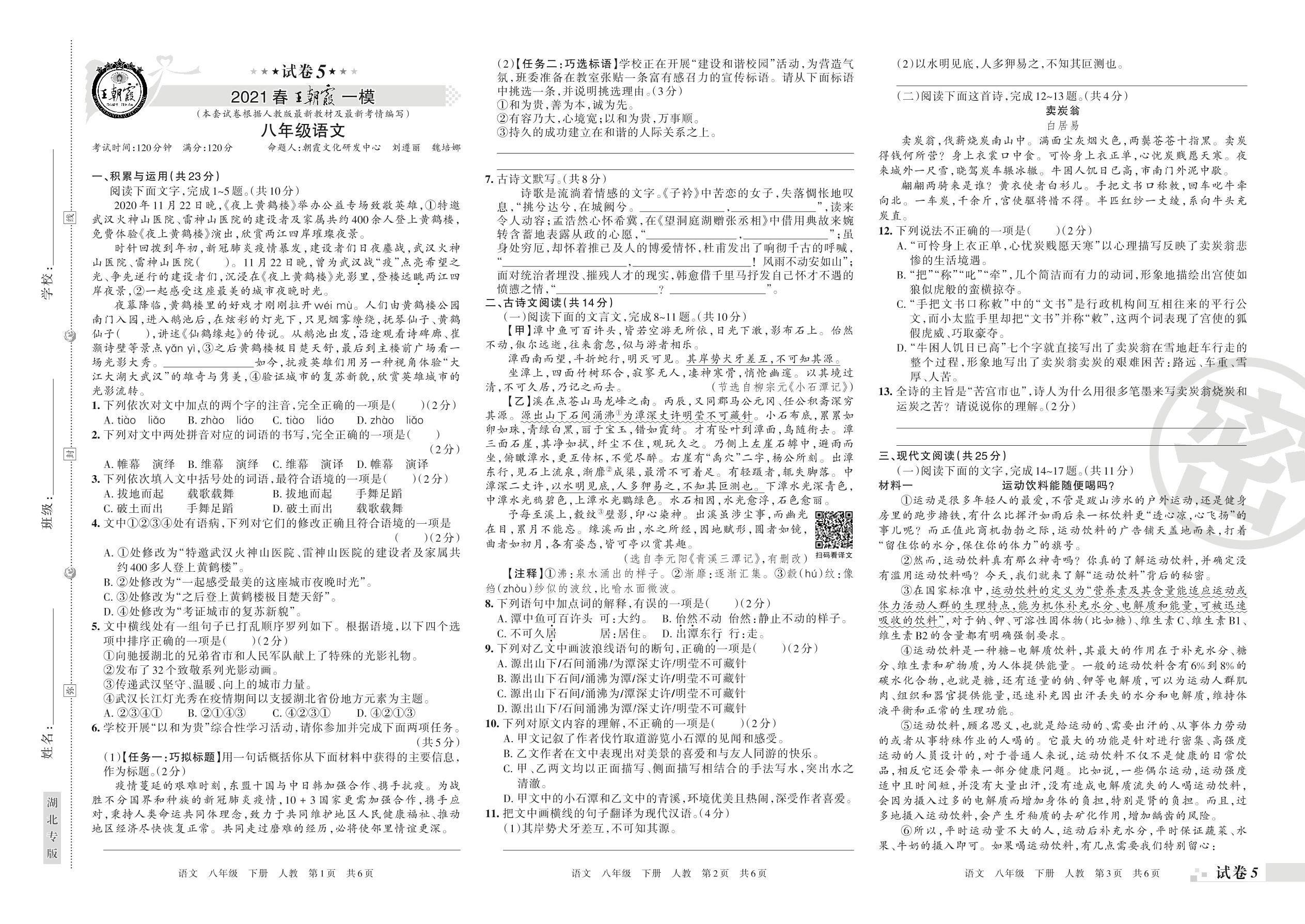 王朝霞期末模拟卷八年级下册语文(人教版)_R2108023611【5】