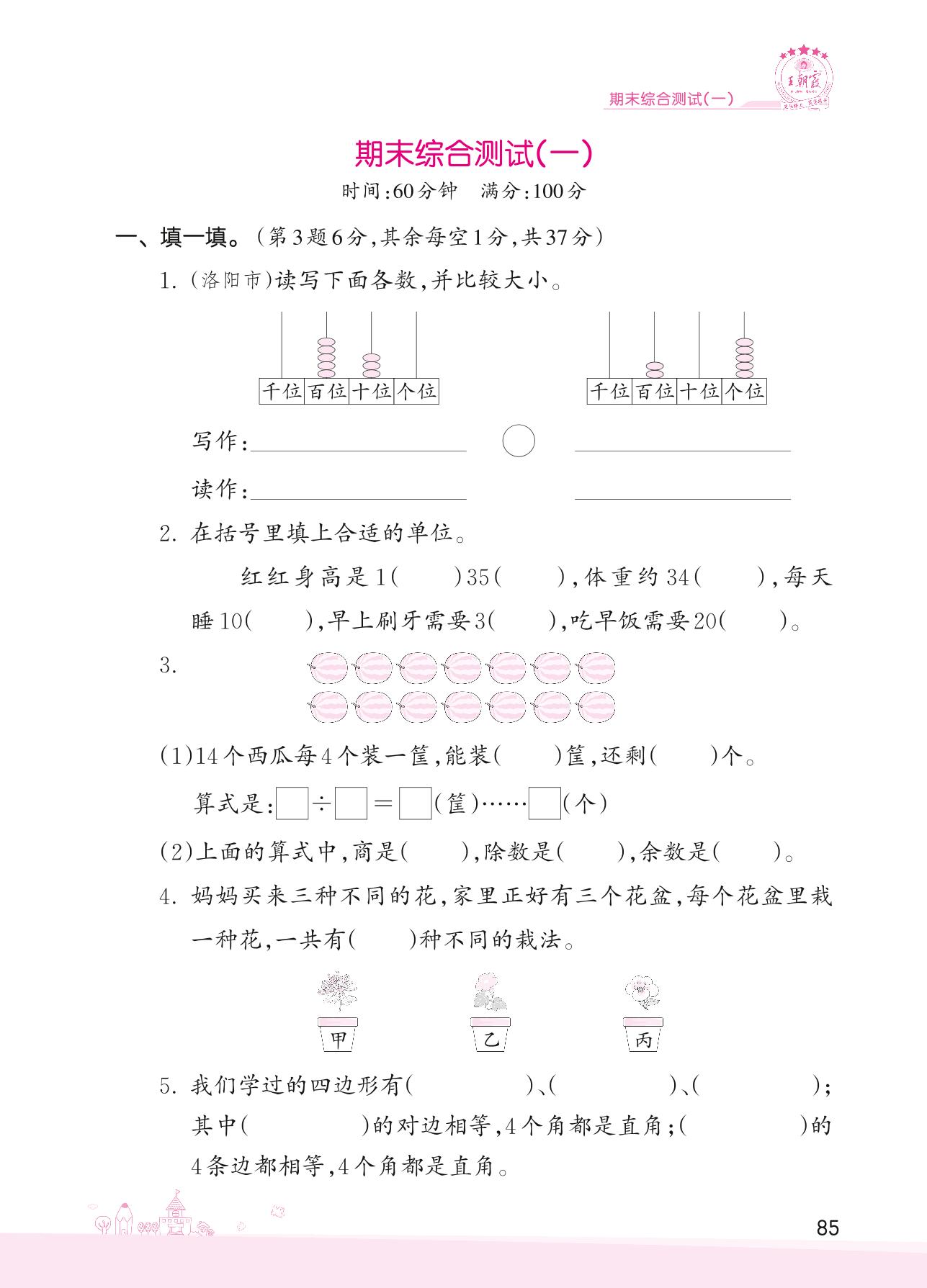 二年级数学冀教版下册期末卷