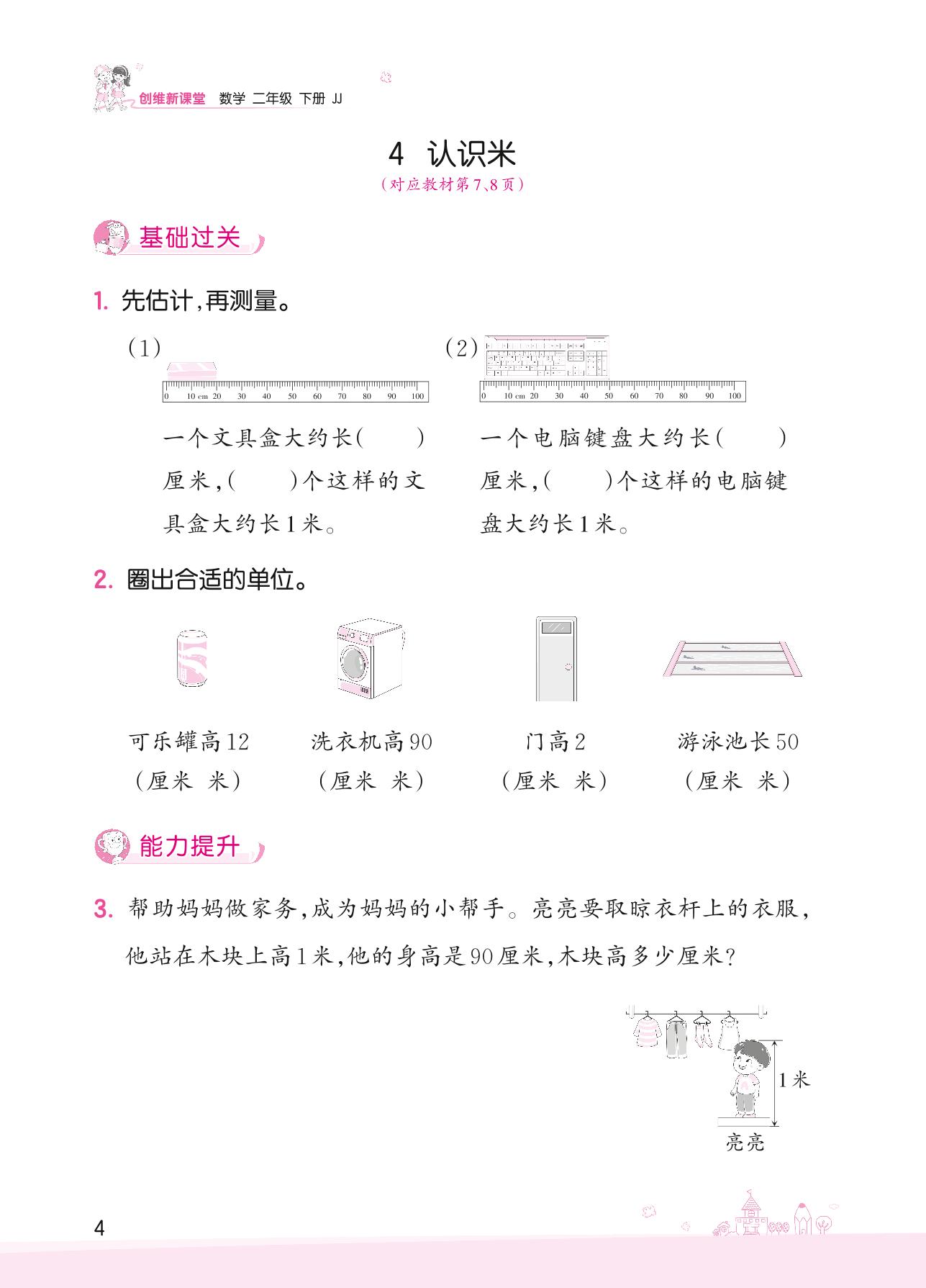 2022下册二年级数学冀教版 一 厘米、分米、米——4 认识米