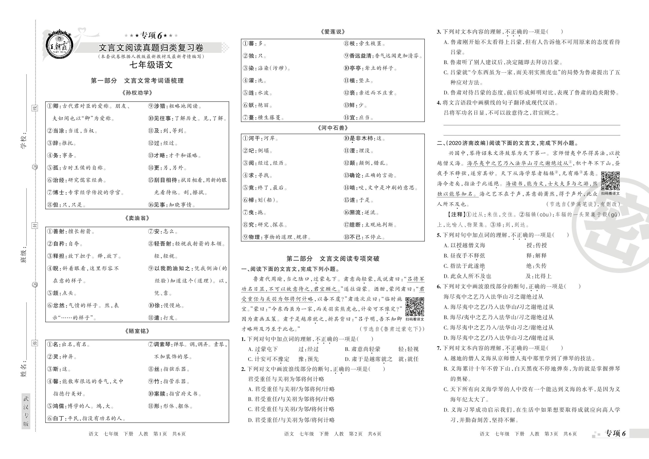 王朝霞期末专项卷——文言文阅读真题归类复习七年级下册语文(人教版)【0】