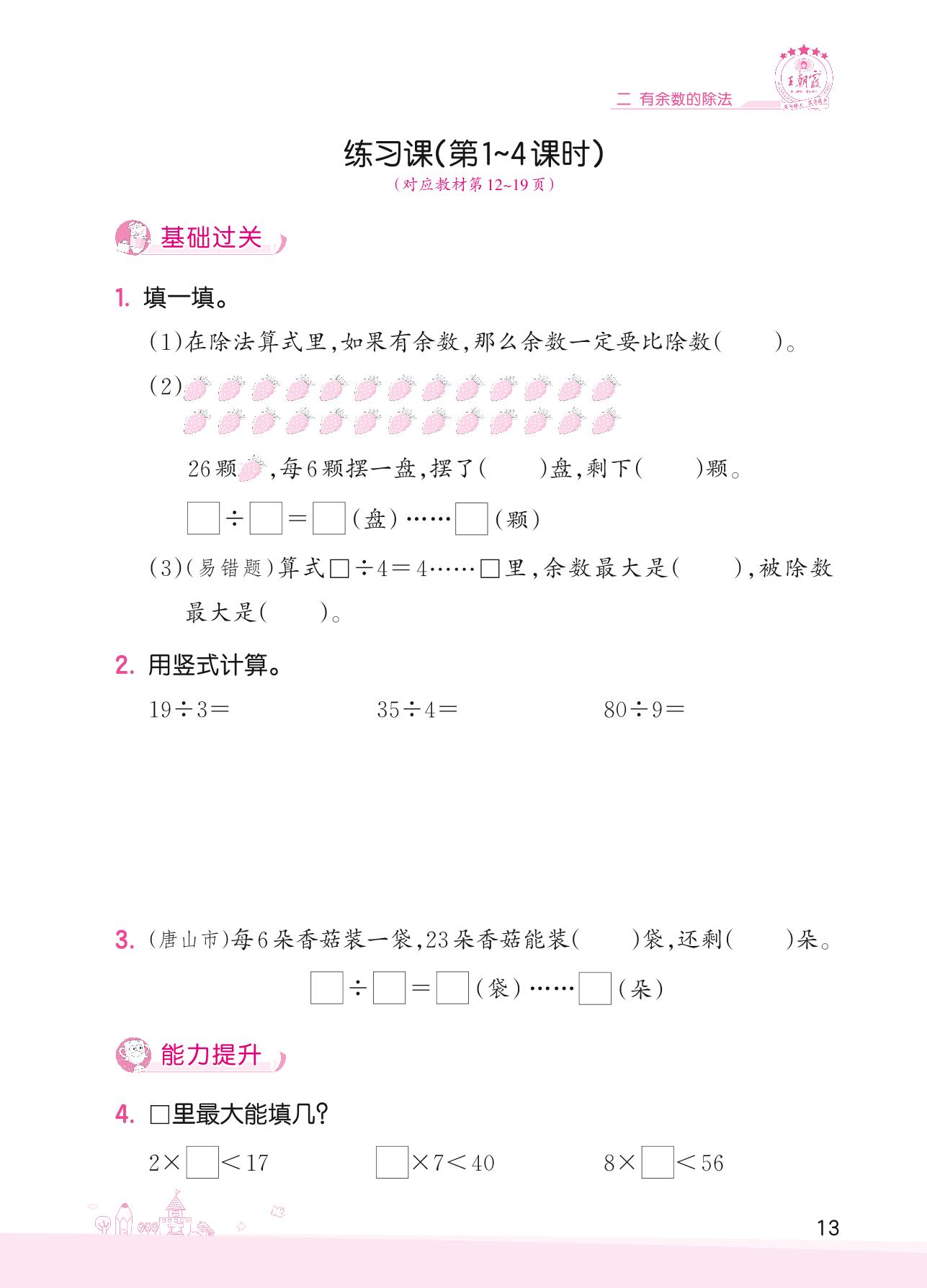 2022下册二年级数学冀教版 二 有余数的除法——练习课(第1~4课时)