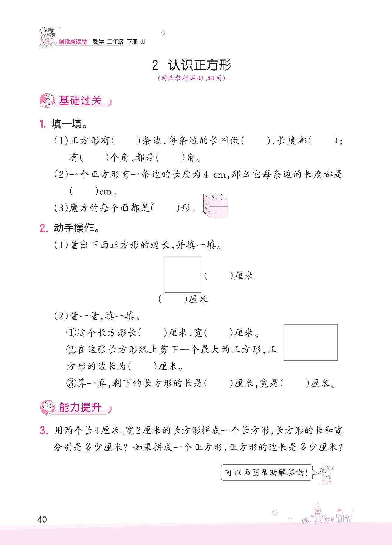 2022下册二年级数学冀教版 五 四边形的认识——2 认识正方形