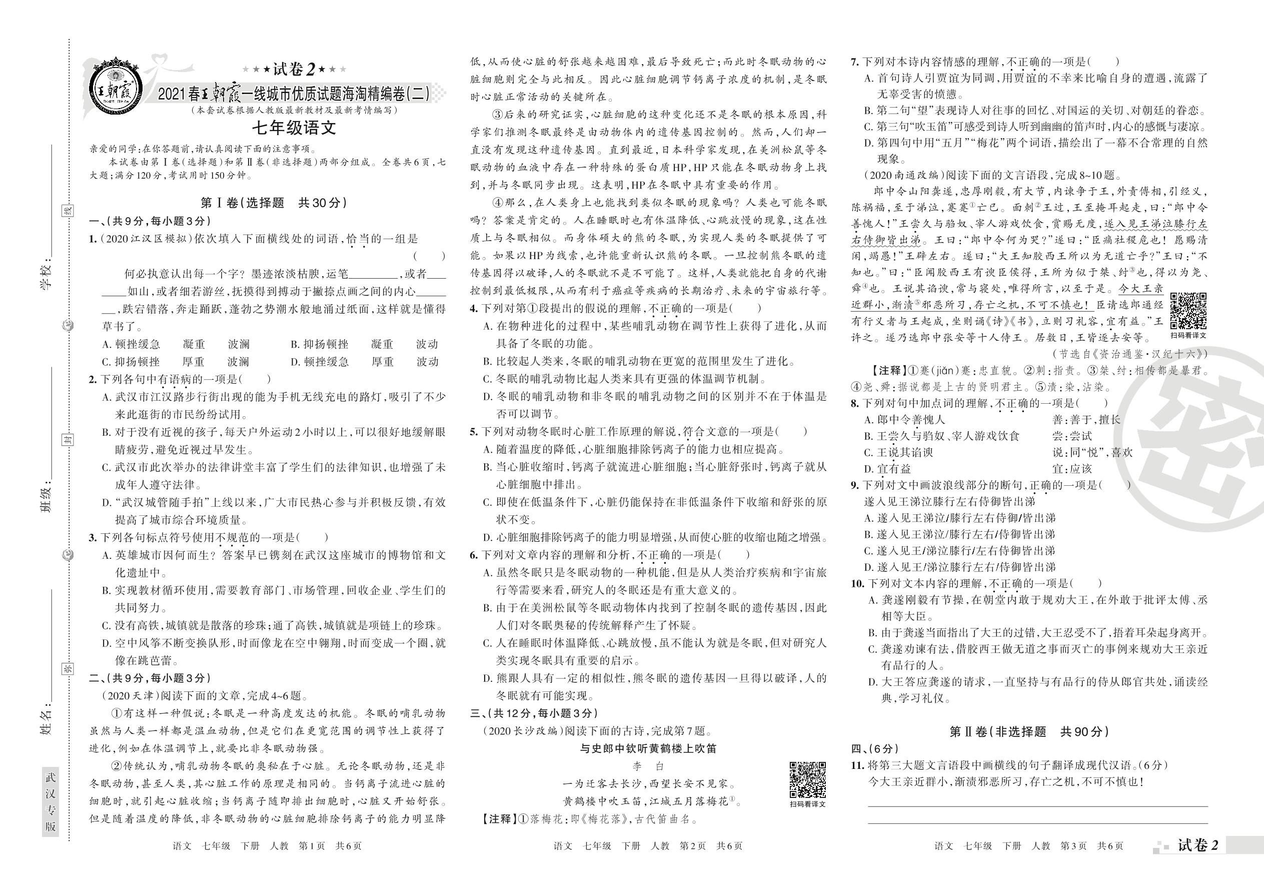 王朝霞海淘期末精编卷七年级下册语文(人教版)【2】