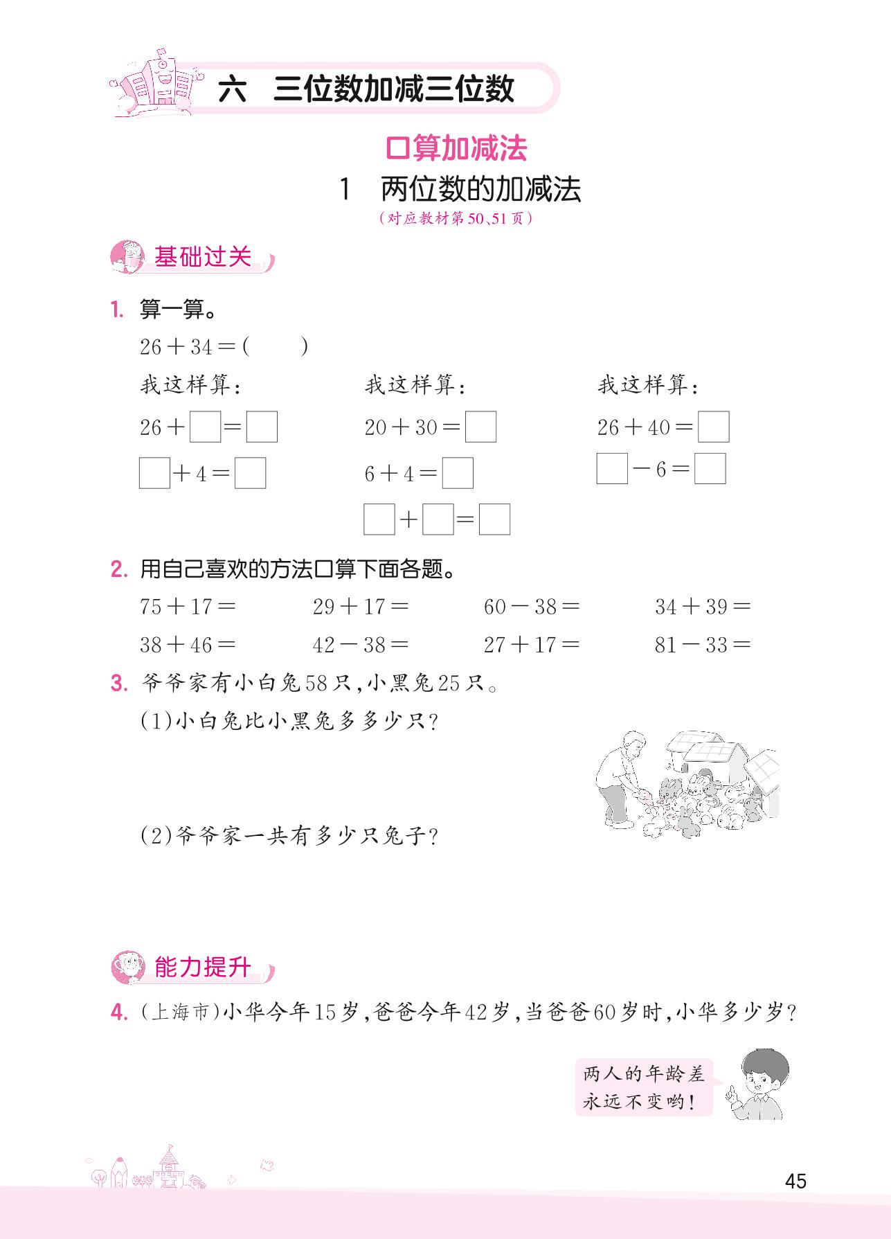 2022下册二年级数学冀教版 六 三位数加减三位数——1 两位数的加减法