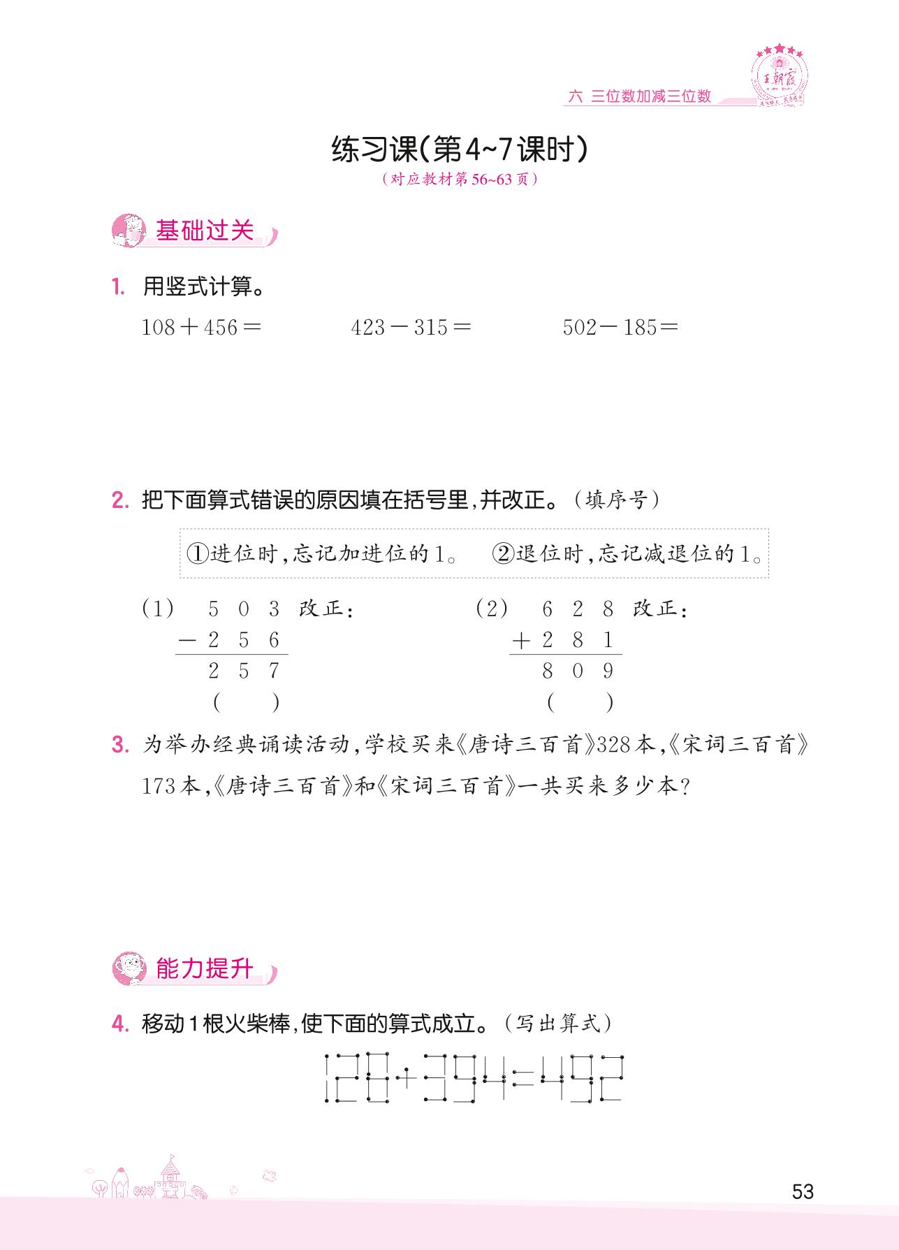 2022下册二年级数学冀教版 六 三位数加减三位数——练习课(第4~7课时)